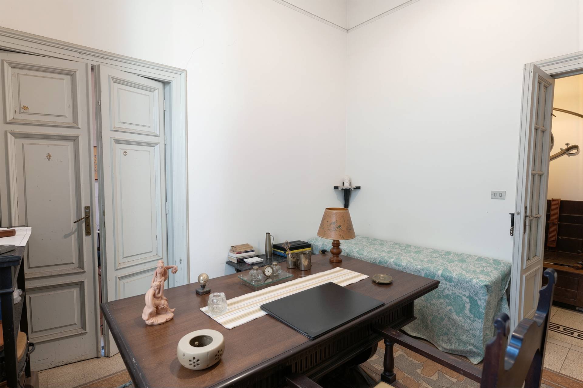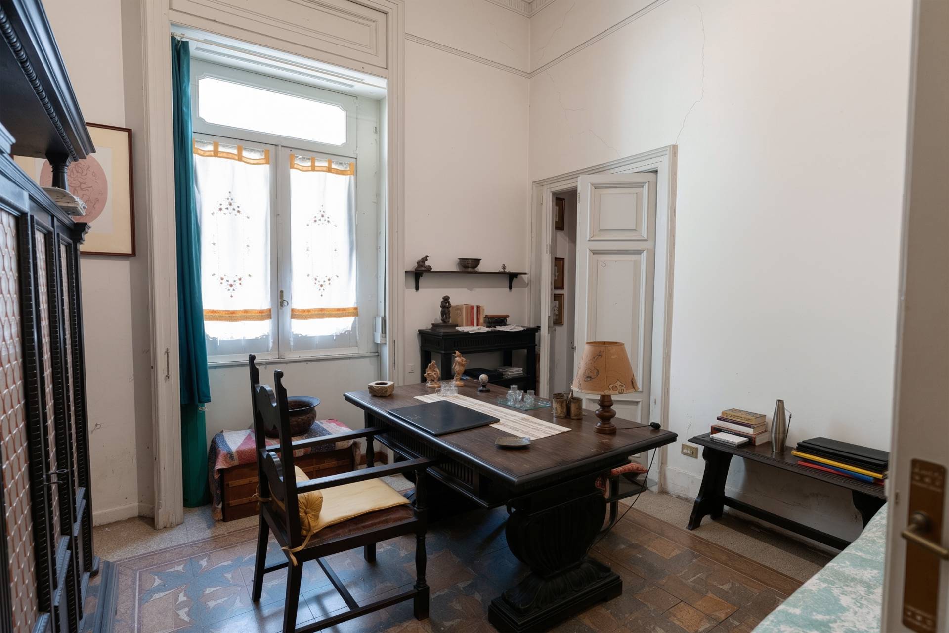 Posto al piano secondo con ascensore, l´appartamento accoglie con un ampio disimpegno che conduce con naturalezza agli ambienti principali. Il salone, spazioso e luminoso, si apre su un balcone dove la luce del giorno entra generosa, mentre una sala studio con finestra offre uno spazio raccolto per momenti di concentrazione o relax, continuando nel disimpegno abbiamo una cucina abitabile con doppi punti luce.