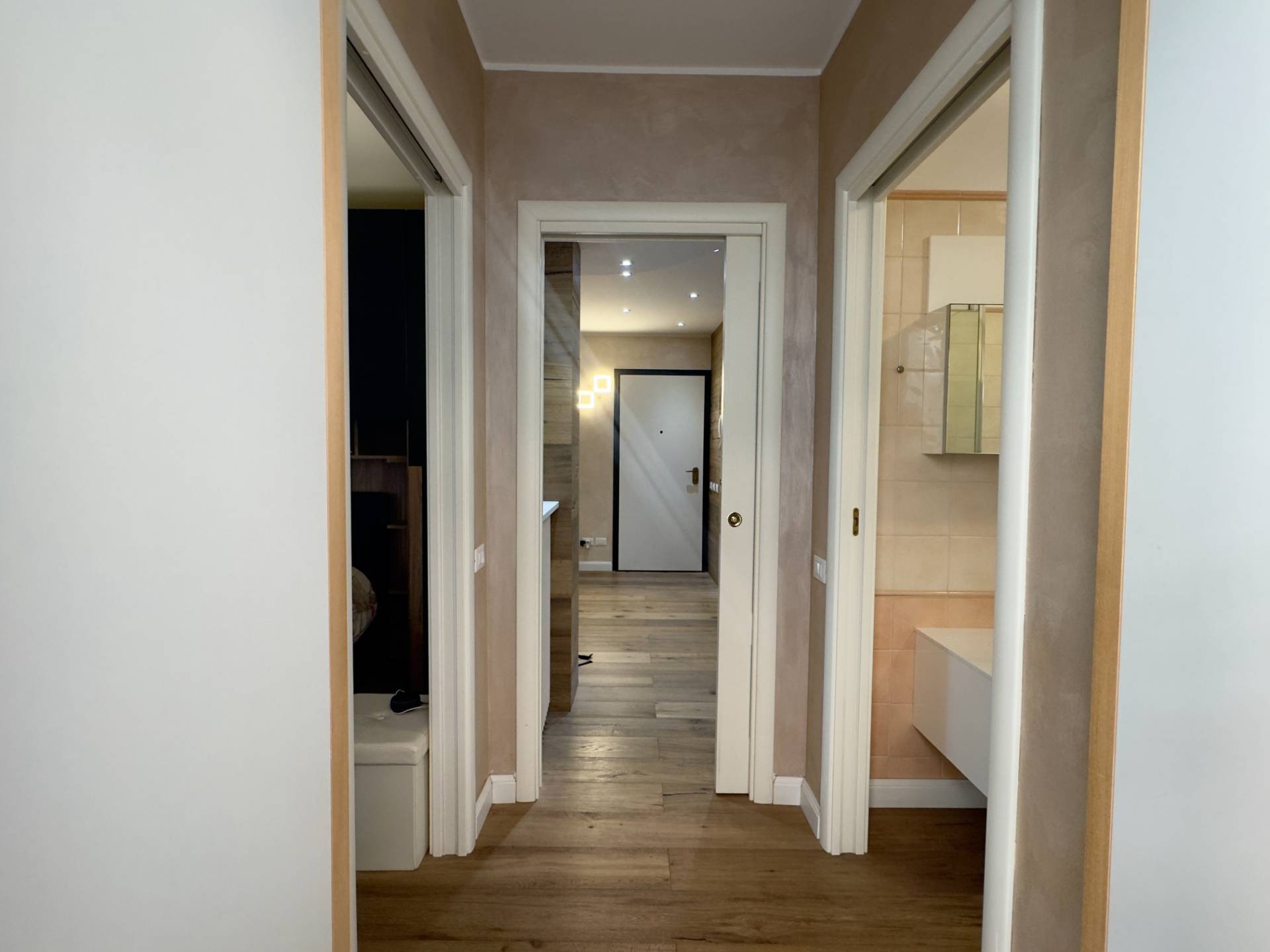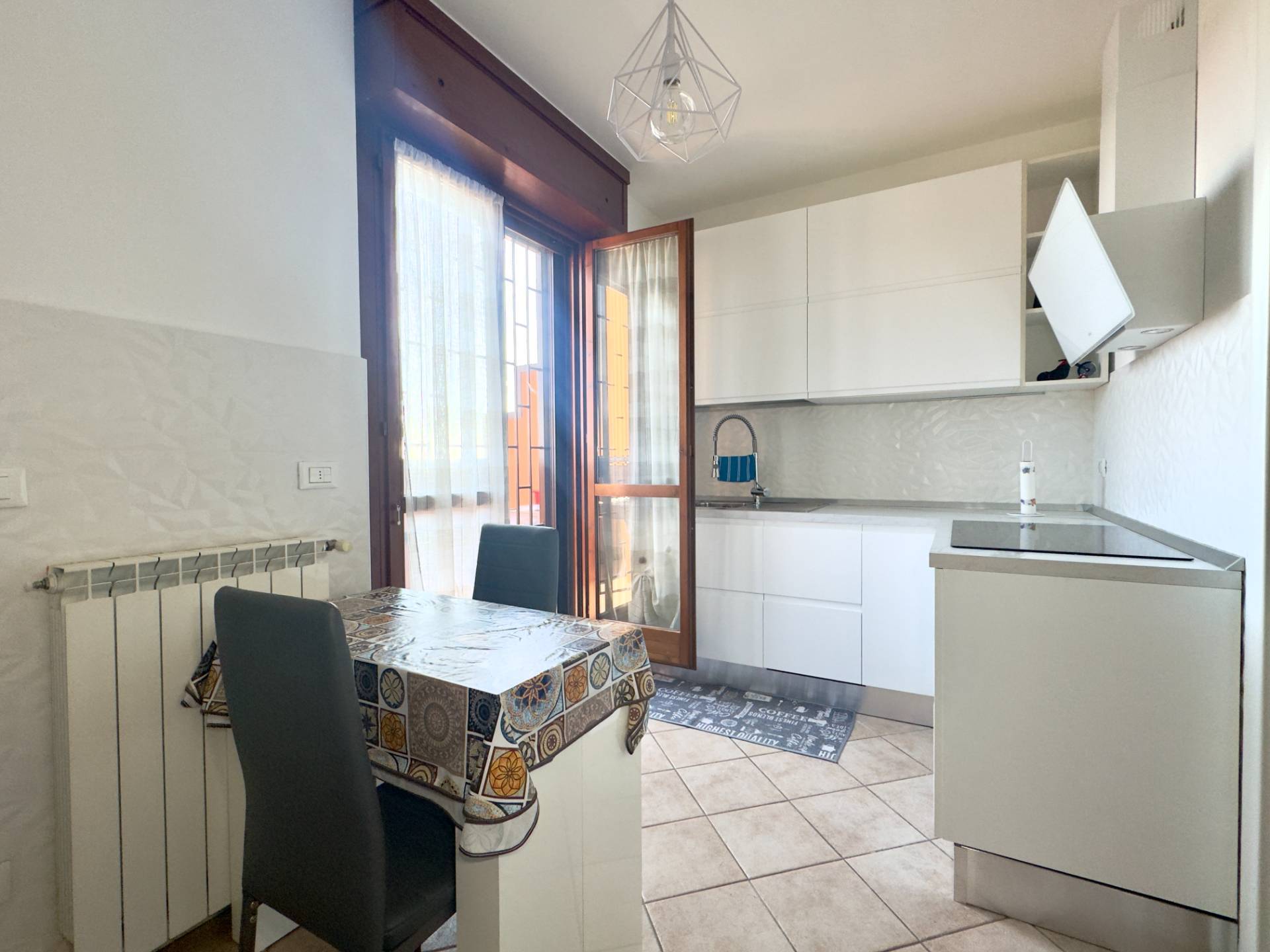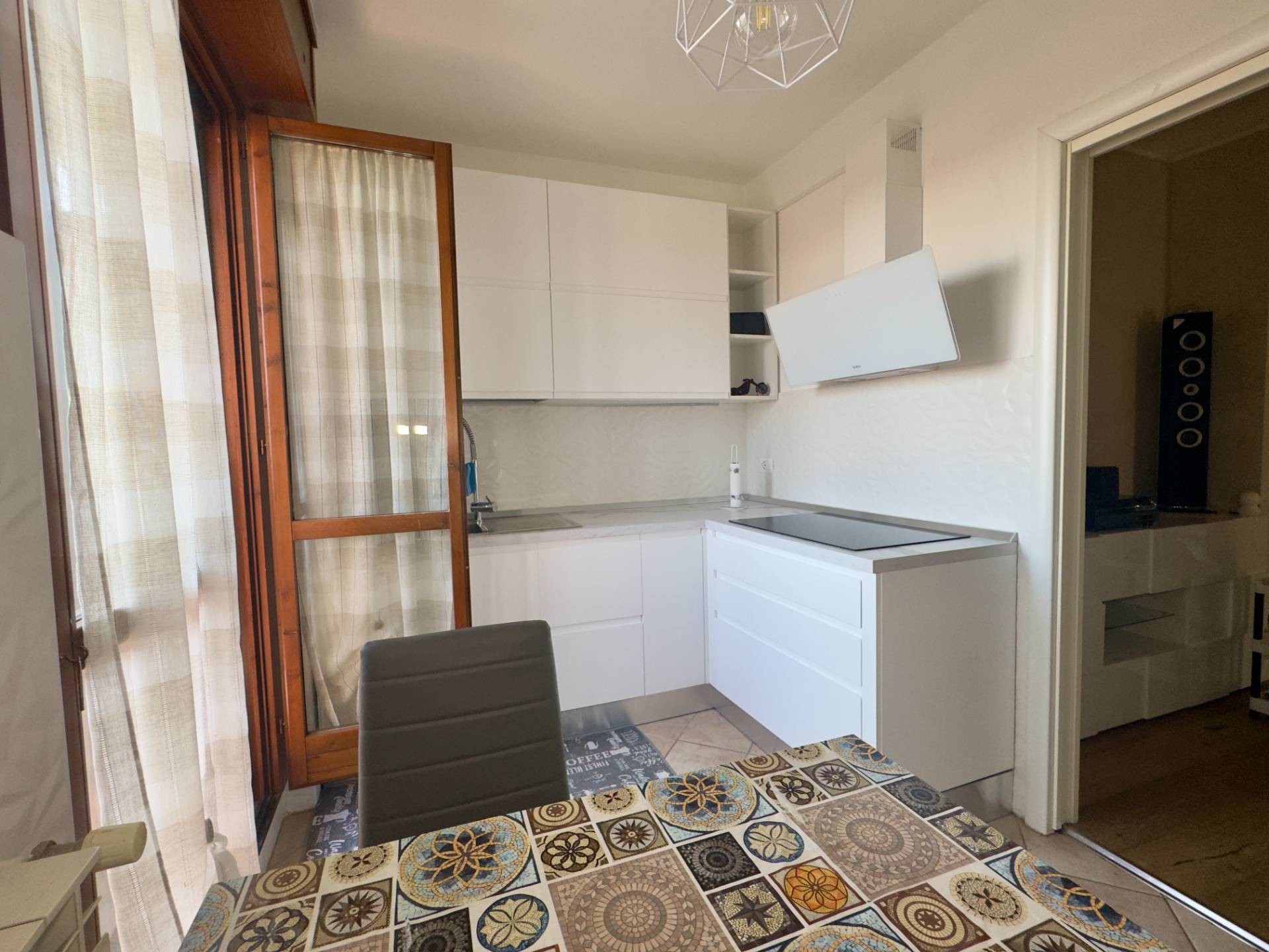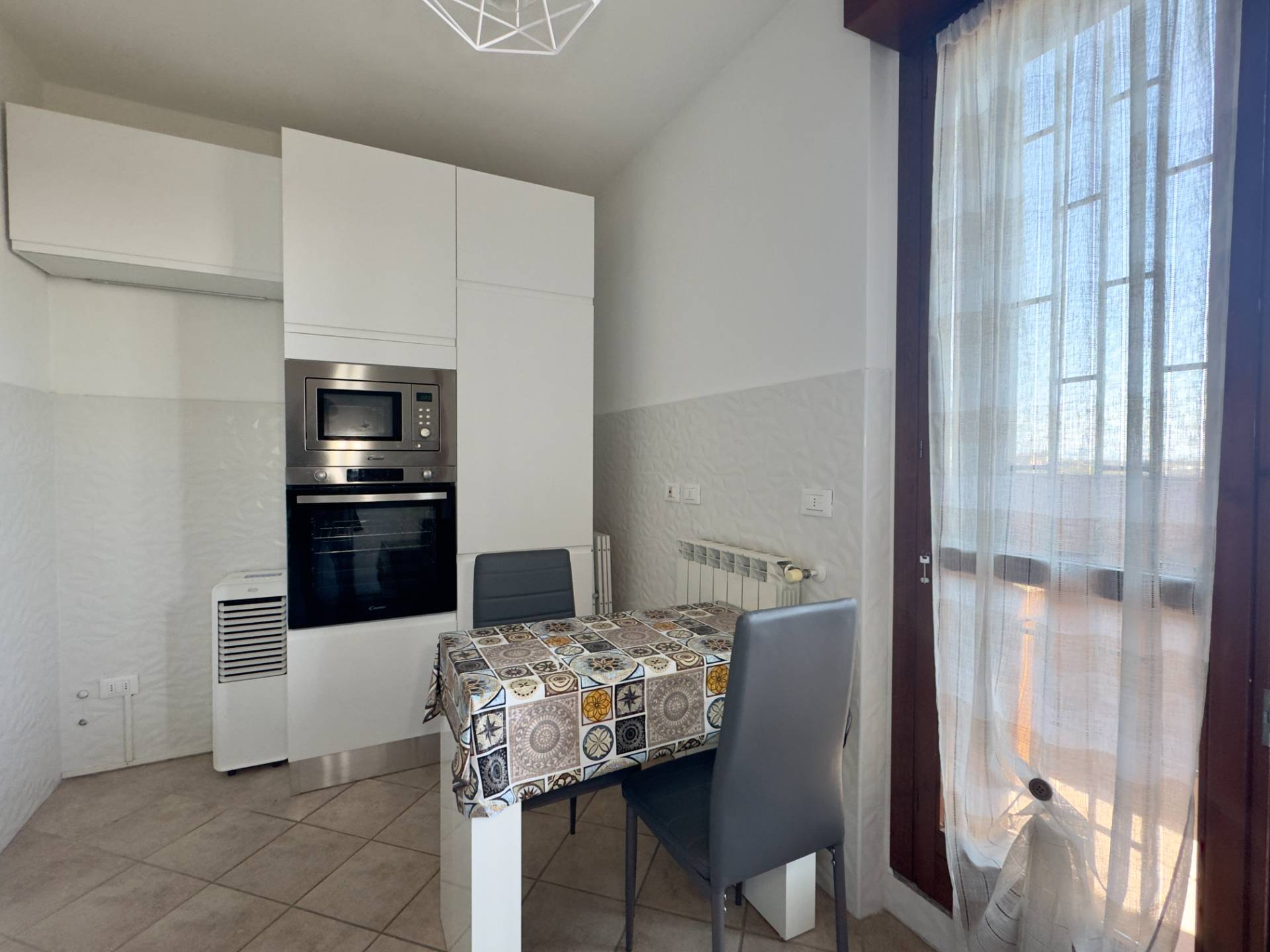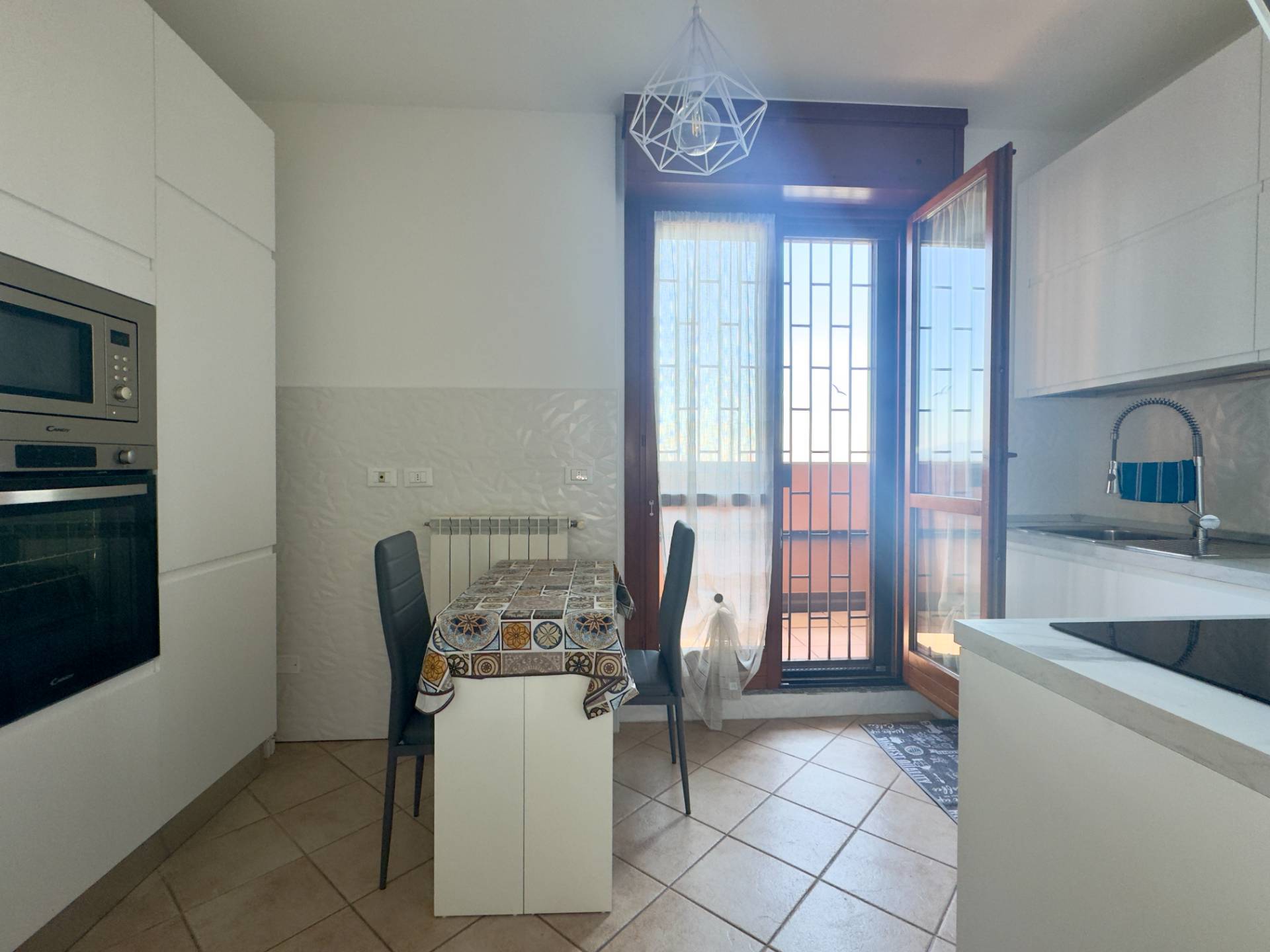 L´ingresso conduce al luminoso soggiorno con porta finestra sul terrazzo, affiancato dalla cucina abitabile, anch´essa collegata alla balconata. La zona notte comprende una spaziosa camera matrimoniale con accesso al balcone e un bagno finestrato con ampia cabina doccia.