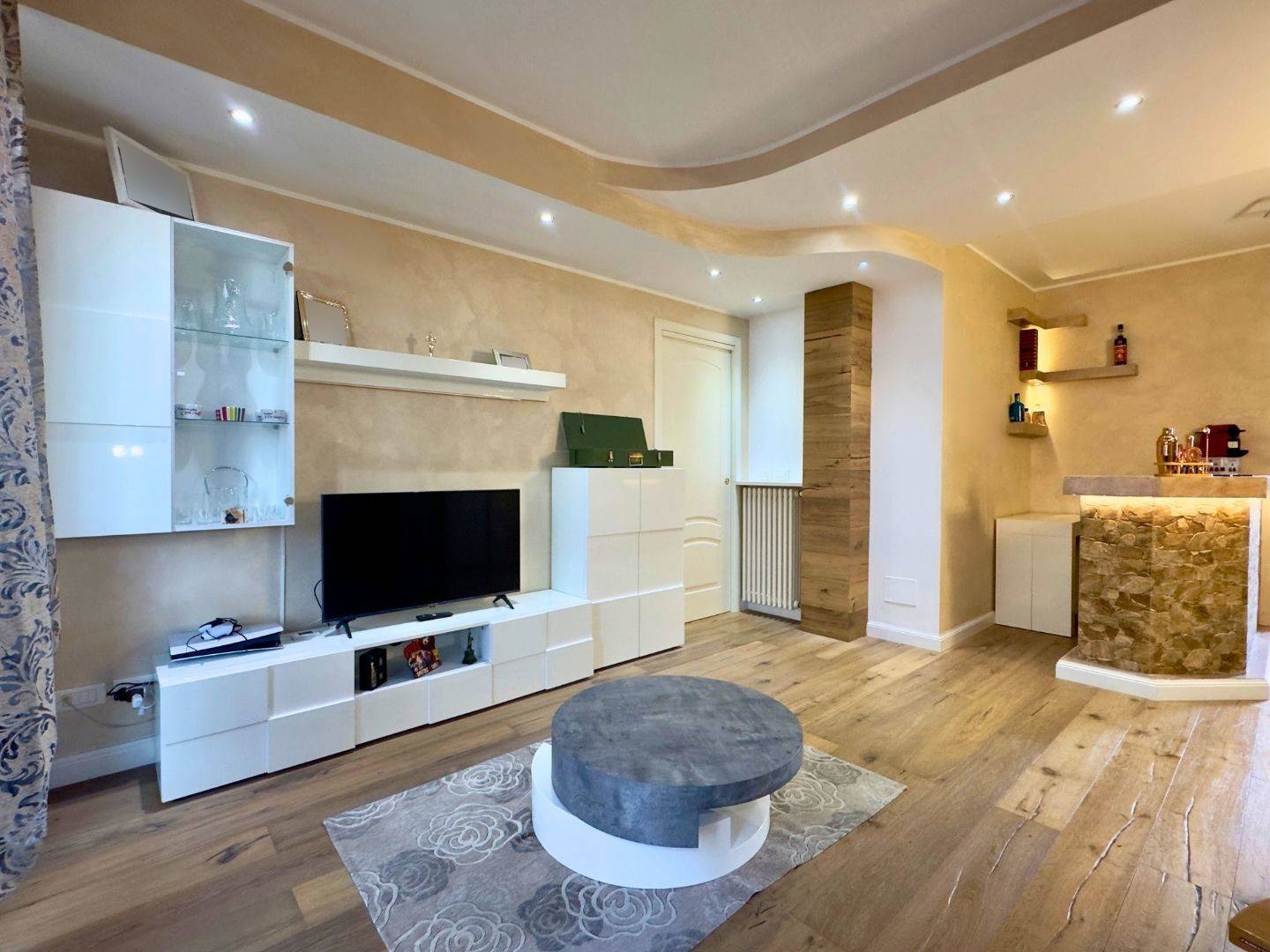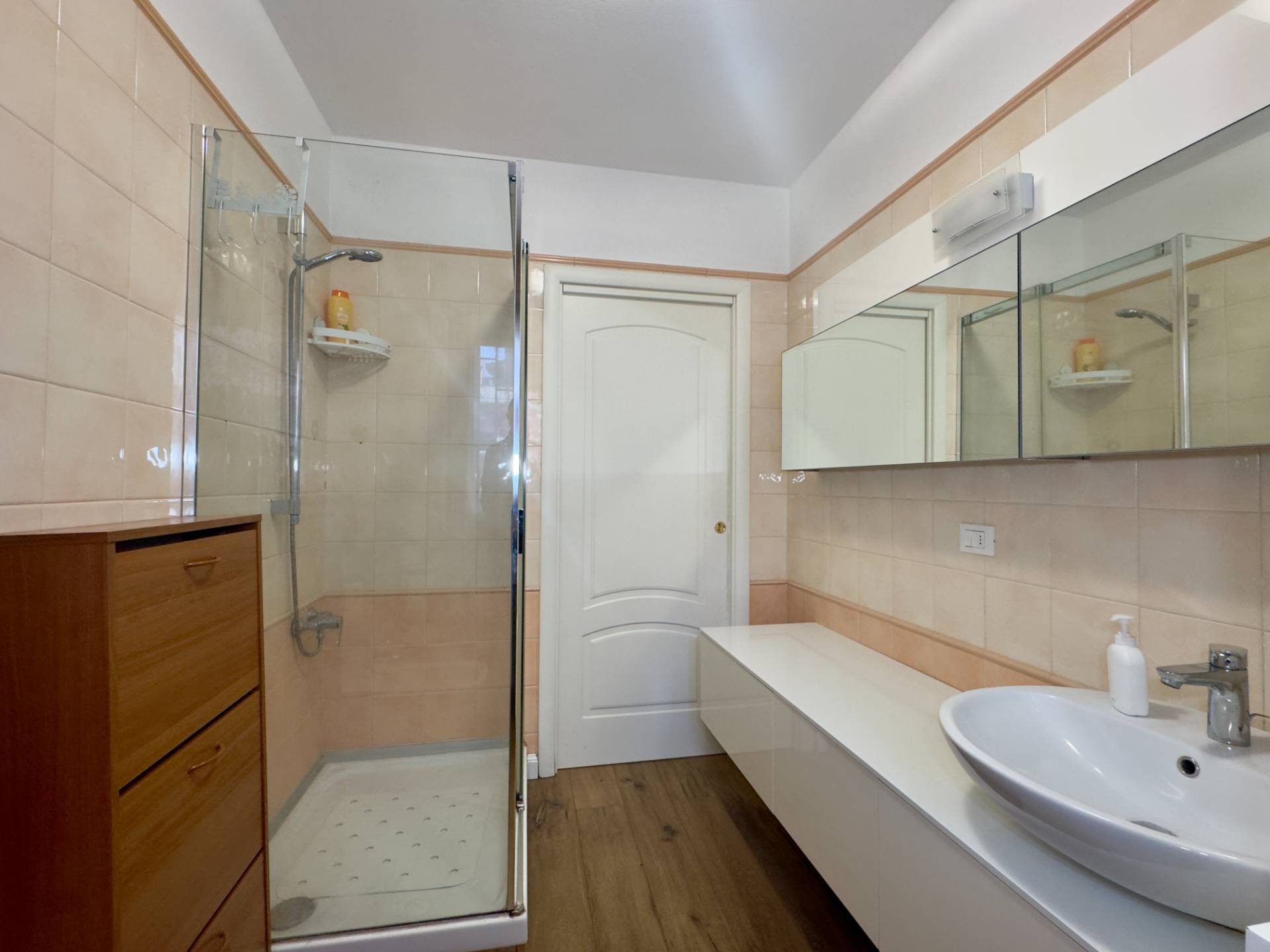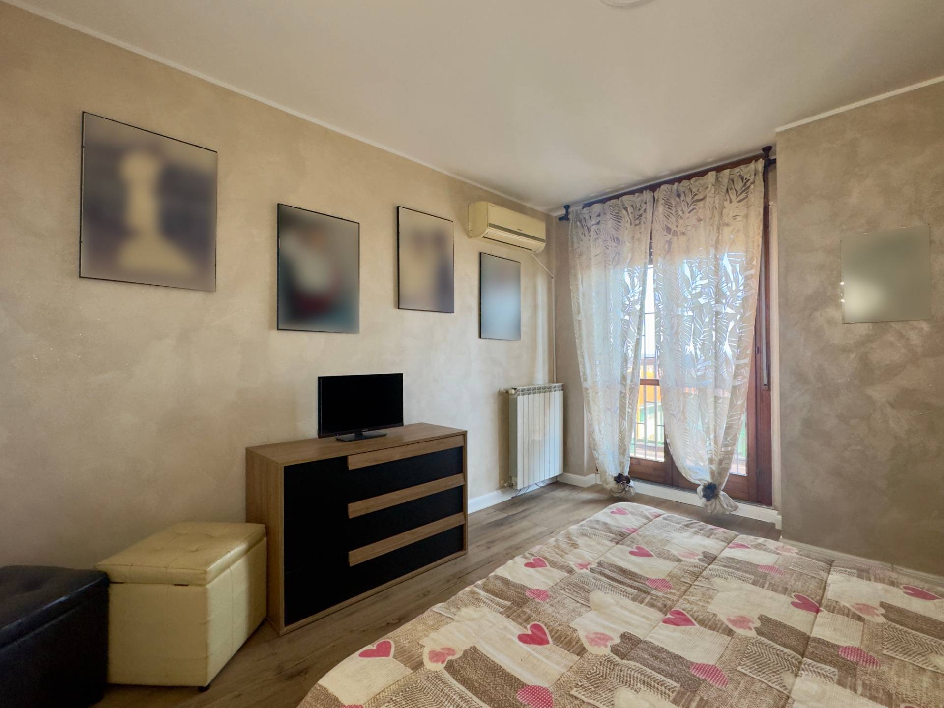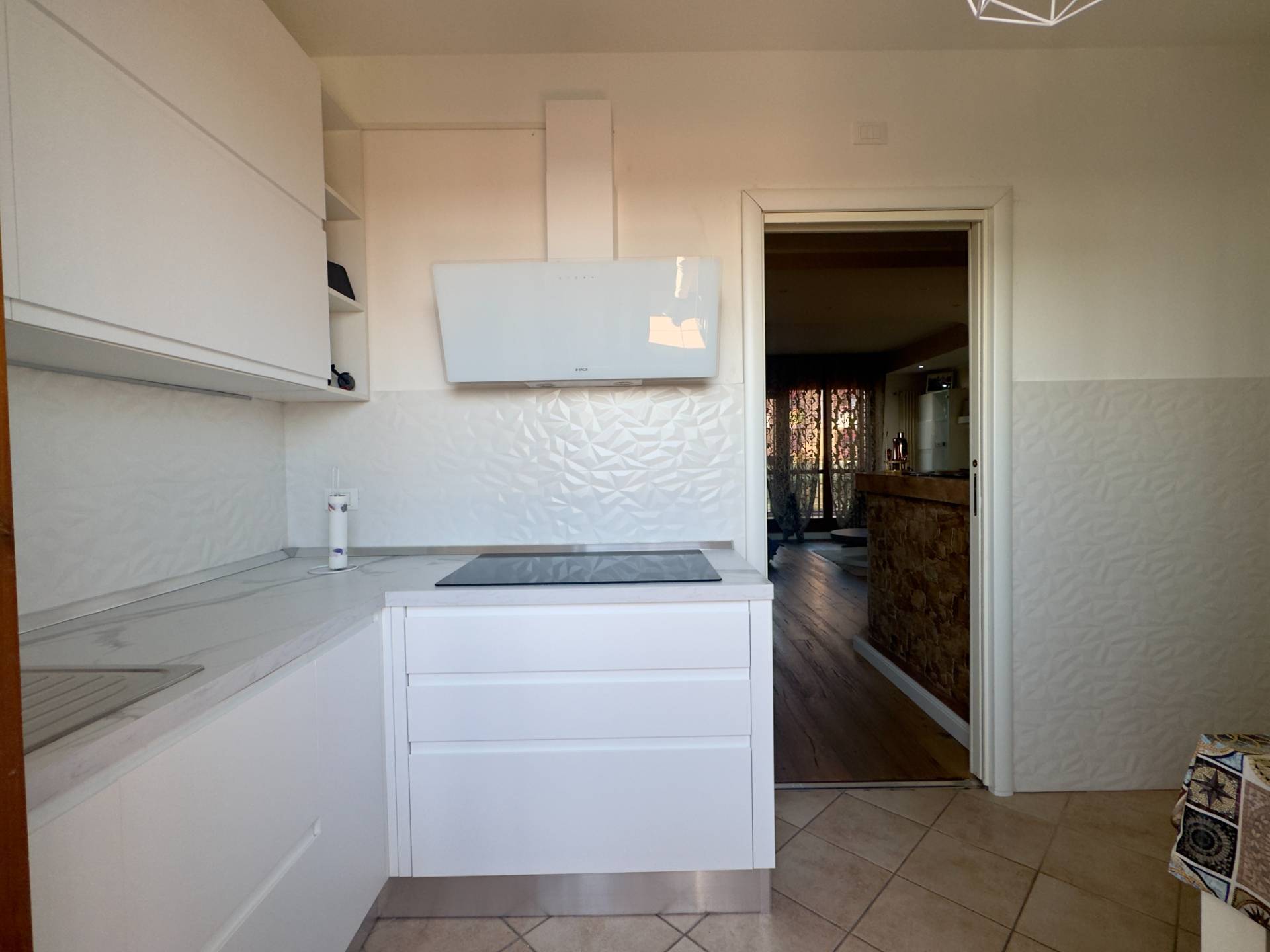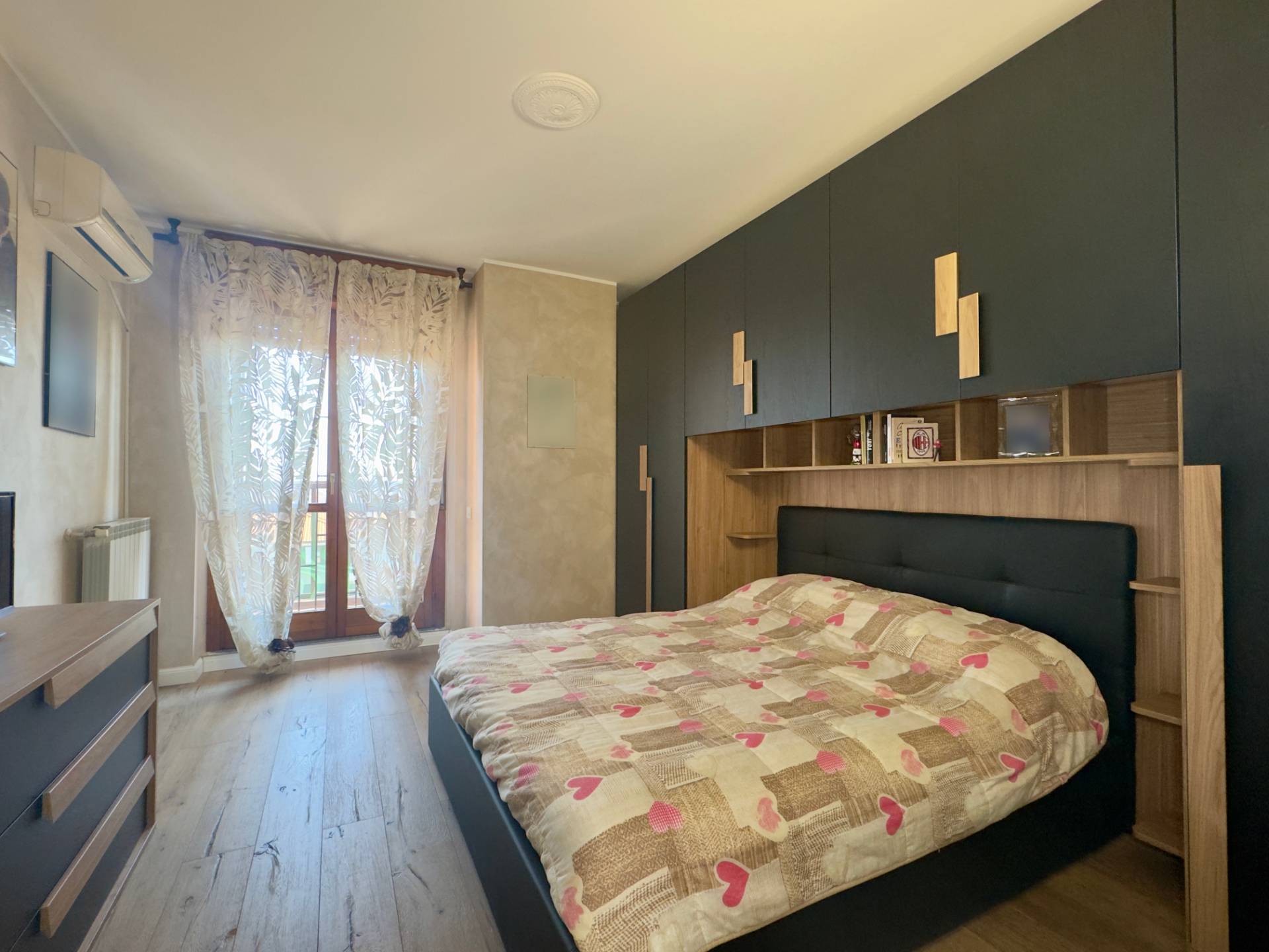 L´ingresso conduce al luminoso soggiorno con porta finestra sul terrazzo, affiancato dalla cucina abitabile, anch´essa collegata alla balconata. La zona notte comprende una spaziosa camera matrimoniale con accesso al balcone e un bagno finestrato con ampia cabina doccia.