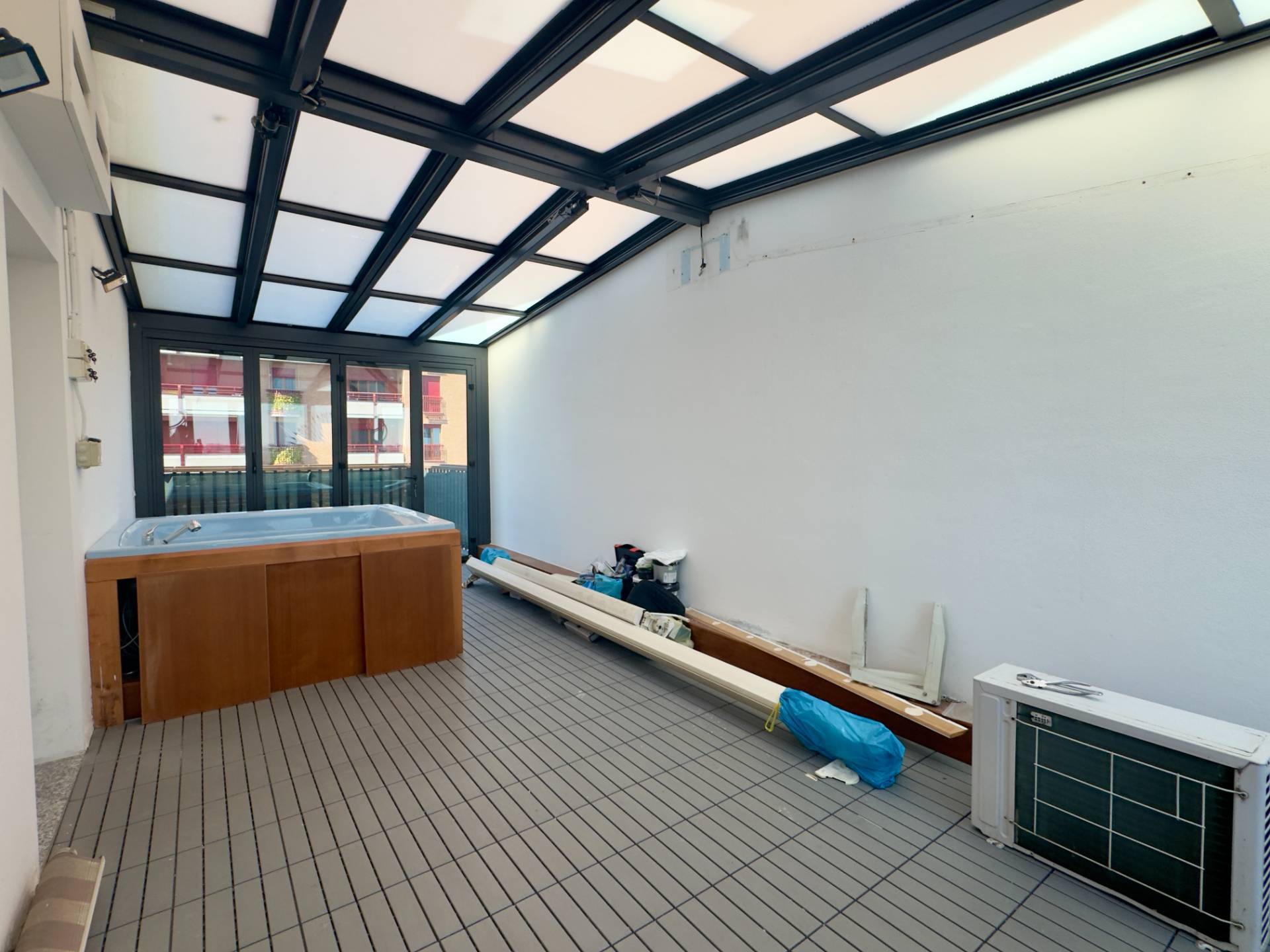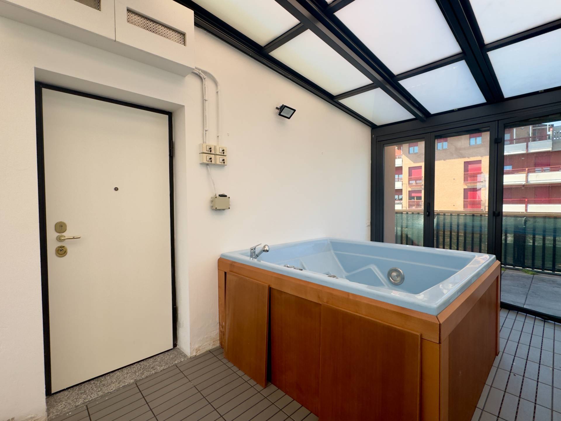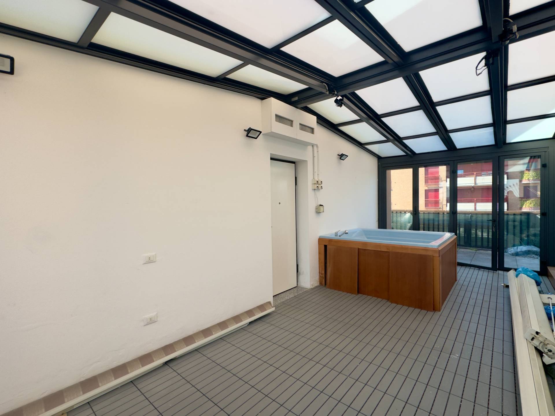 Un terrazzo verandato di circa 24 mq, dotato di copertura retrattile e vasca idromassaggio, collega un ulteriore balcone all´imponente terrazzo scoperto di circa 30 mq, ideale per momenti di relax all´aperto.