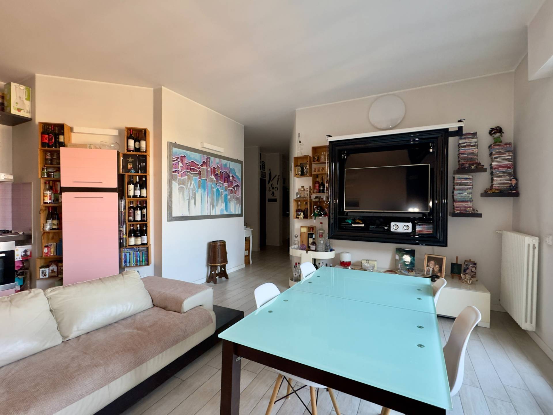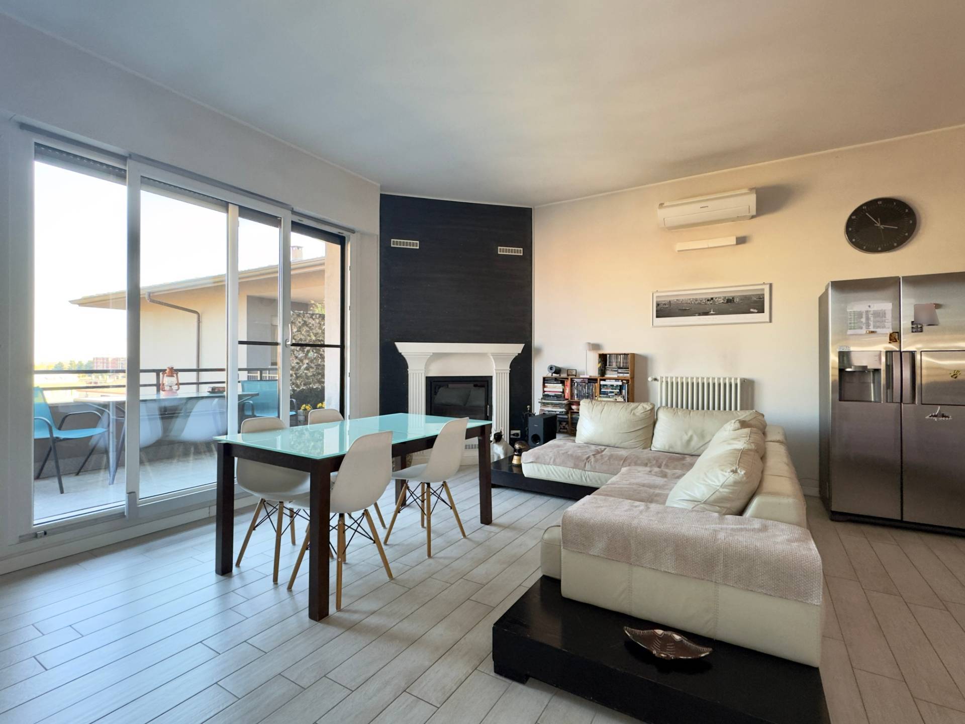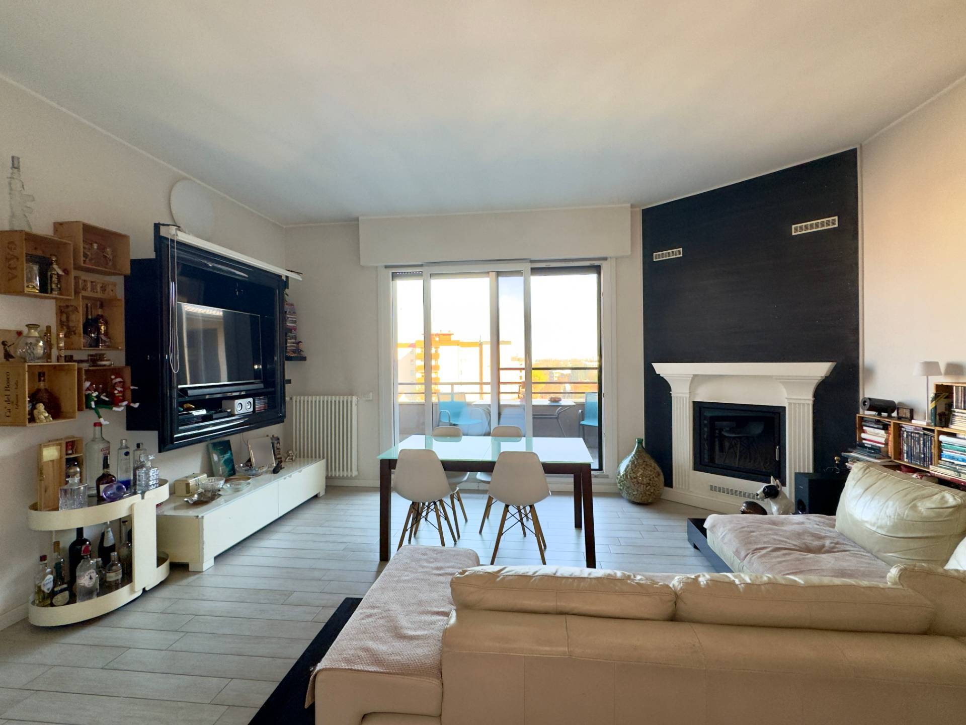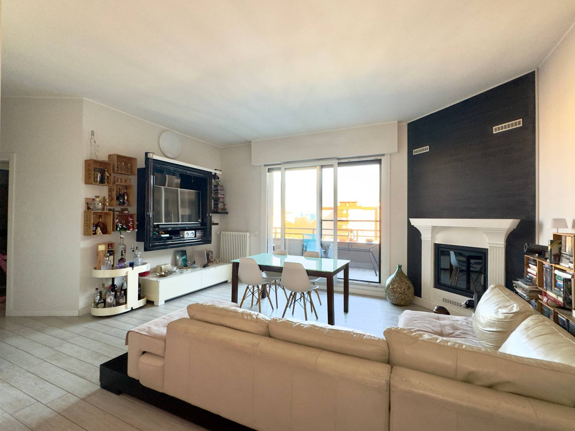 L'appartamento si sviluppa su un unico livello ed è cosi' composto: ingresso su ampia zona giorno con cucina a vista e esclusivo camino, porta finestra che conduce al terrazzo che collega tutto l'appartamento, ottimo per godersi momenti di relax all'aperto.