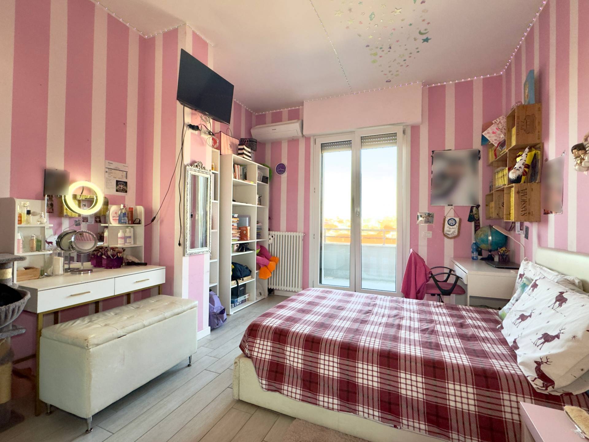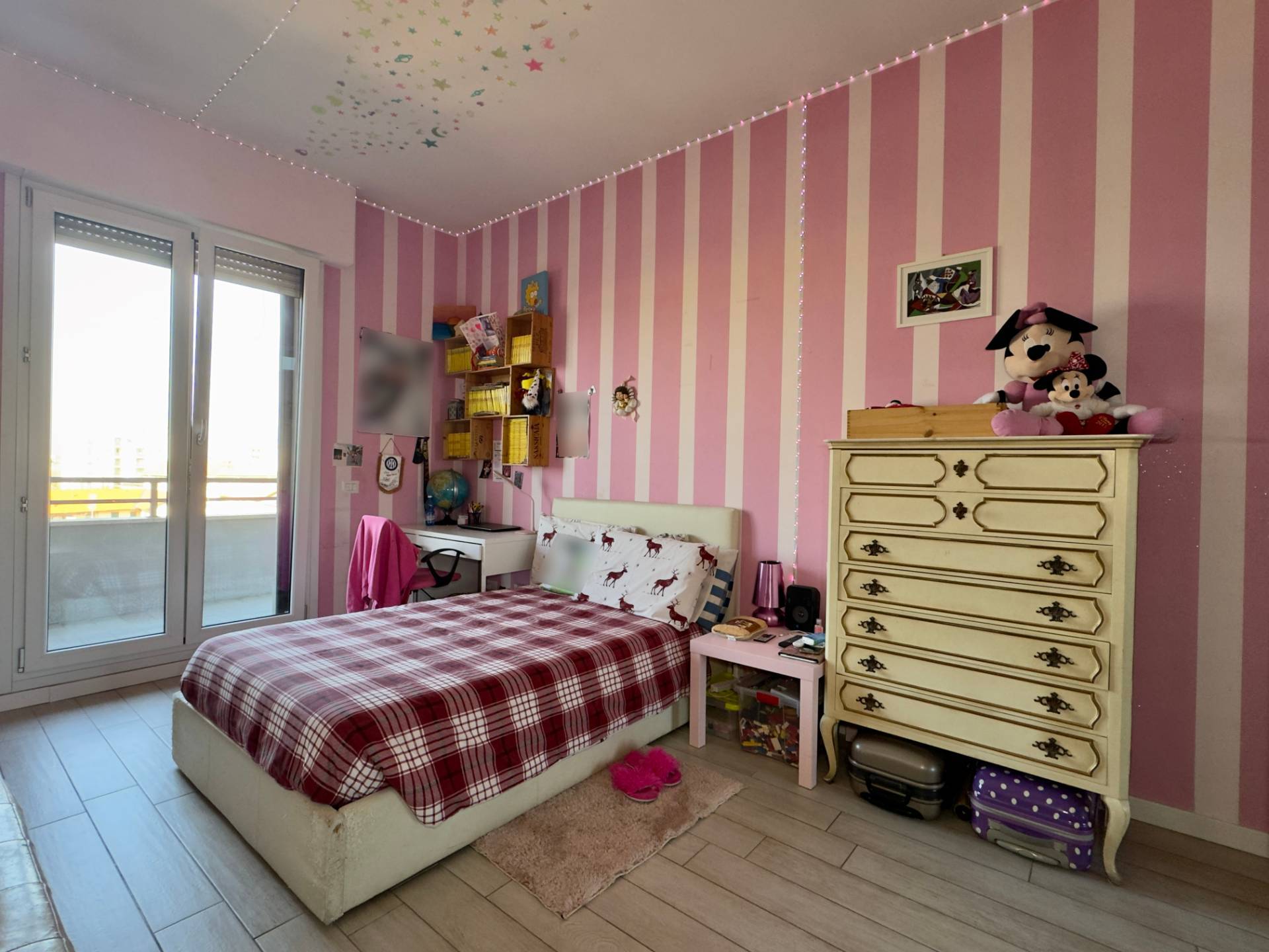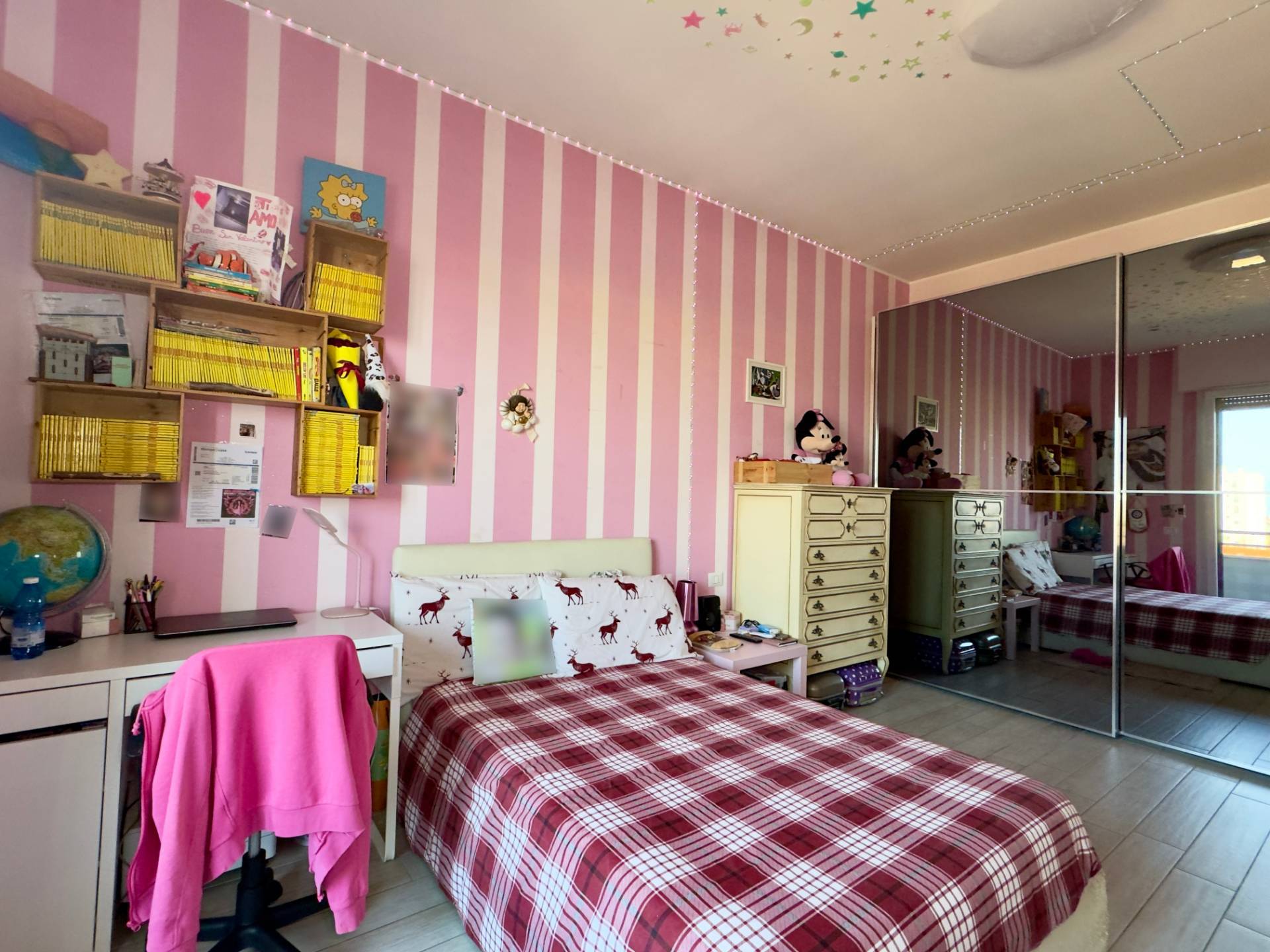 La zona notte comprende una spaziosa camera matrimoniale, una cameretta e doppi servizi.