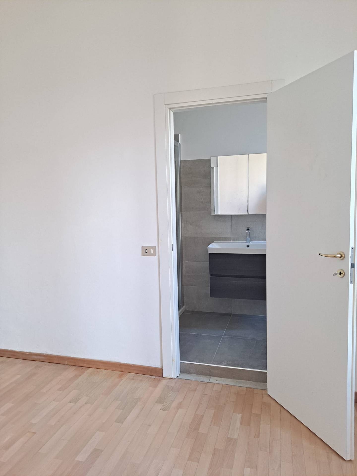 Un doppio corridoio conduce alla zona notte, che si sviluppa in modo riservato e comprende tre camere da letto di quale una è con balcone affaccio esterno e un'altra con un bagno en suite. Completa la proprietà un bagno finestrato con box doccia, una cabina armadio e un ampio ripostiglio, pensati per garantire massima vivibilità. Cantina pertinenziale
