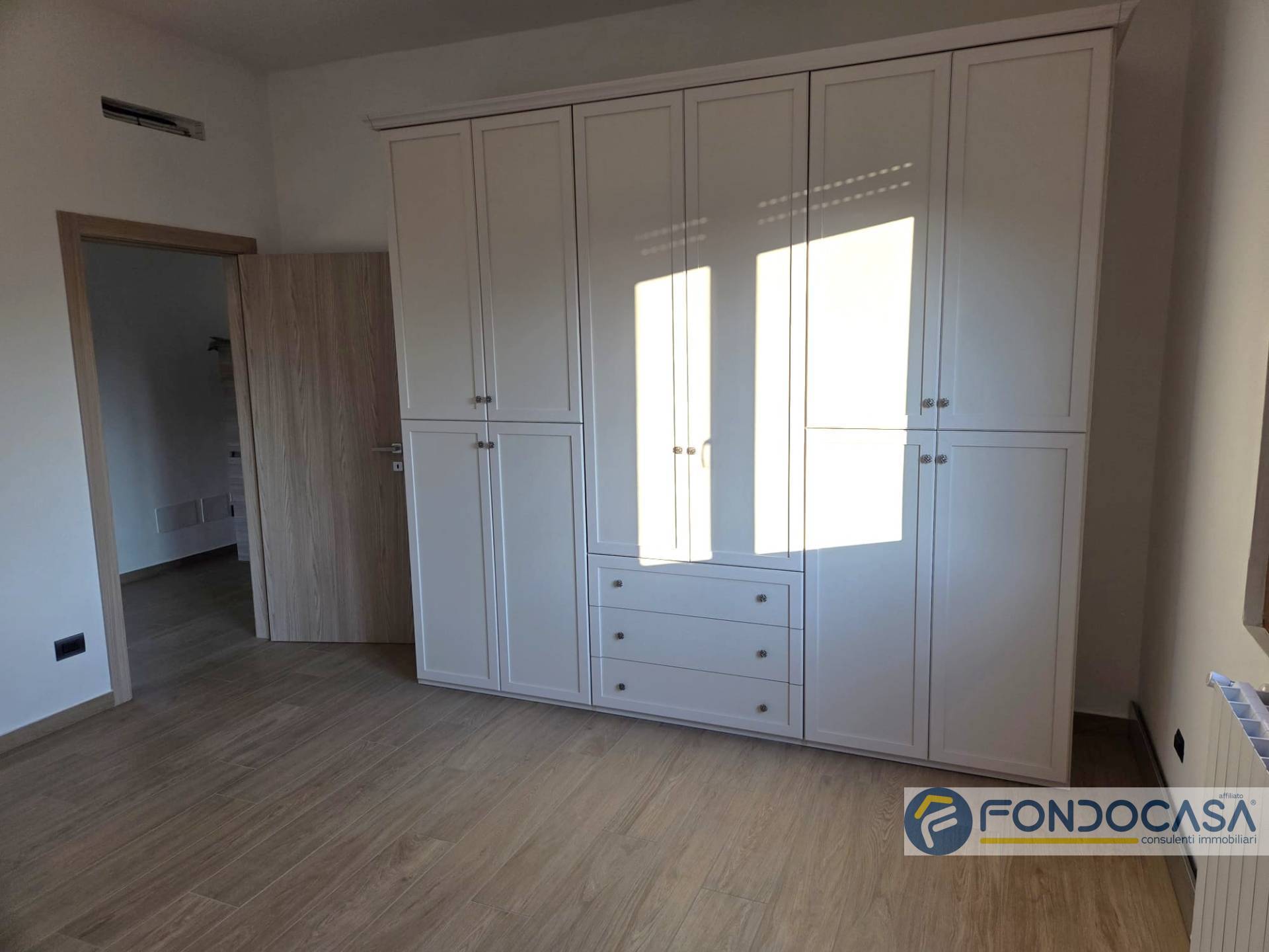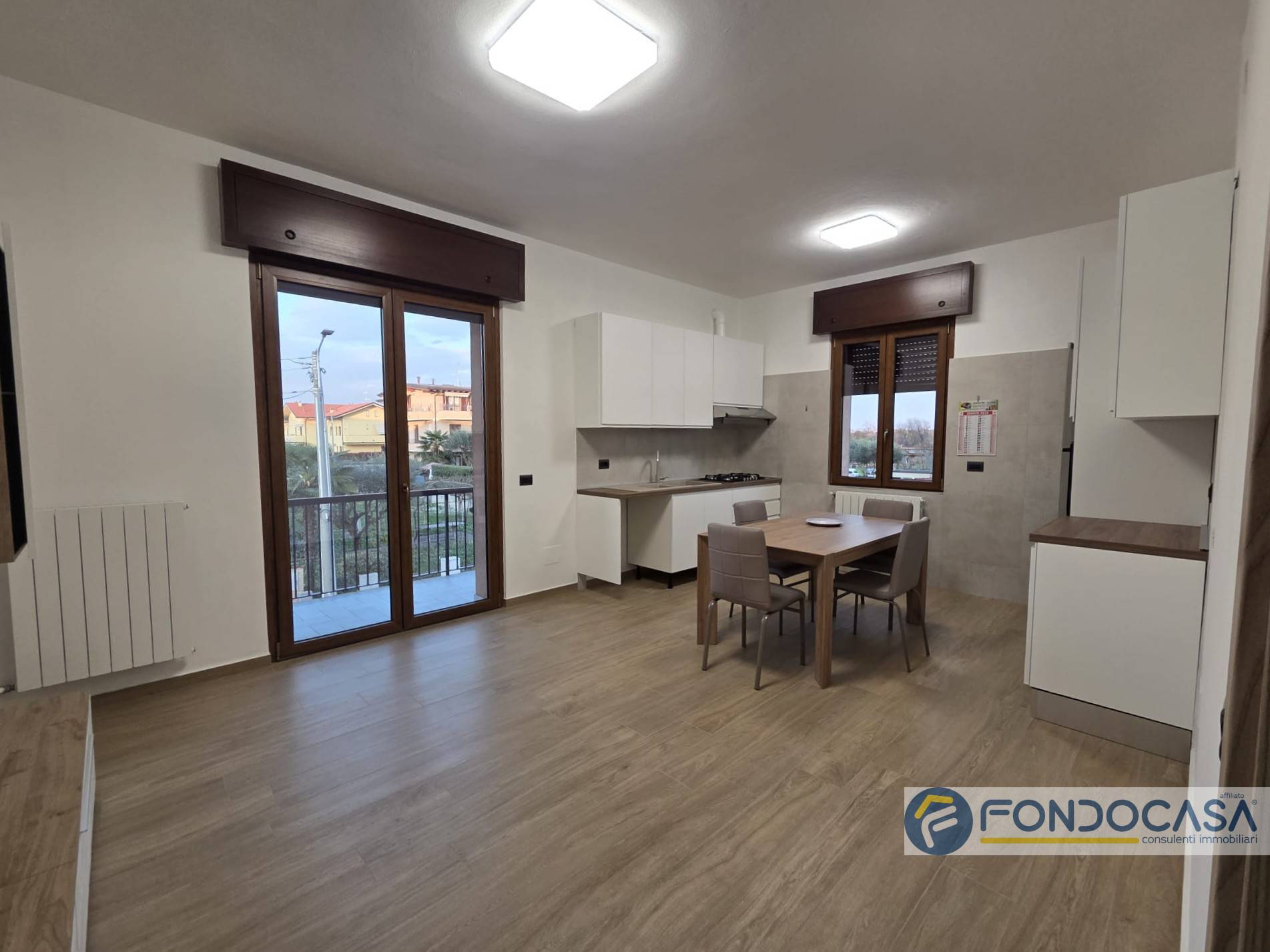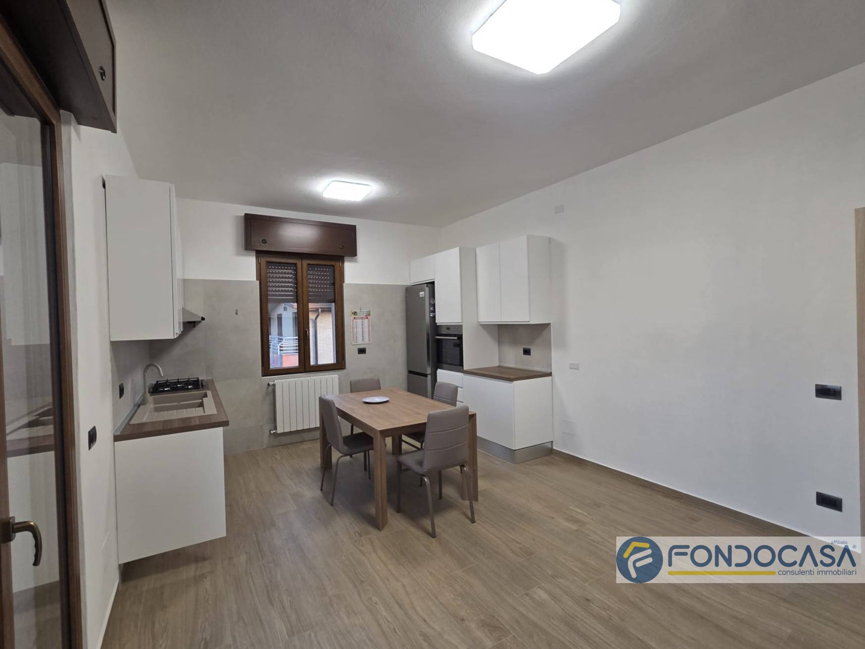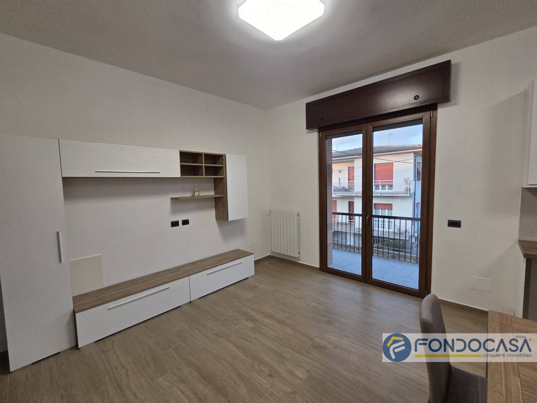L'appartamento è posto al primo piano ed è così composto: ingresso sul disimpegno che conduce alla zona giorno con cucina a vista e sfogo sul balcone sfruttabile, camera da letto matrimoniale, cameretta e bagno con doccia.