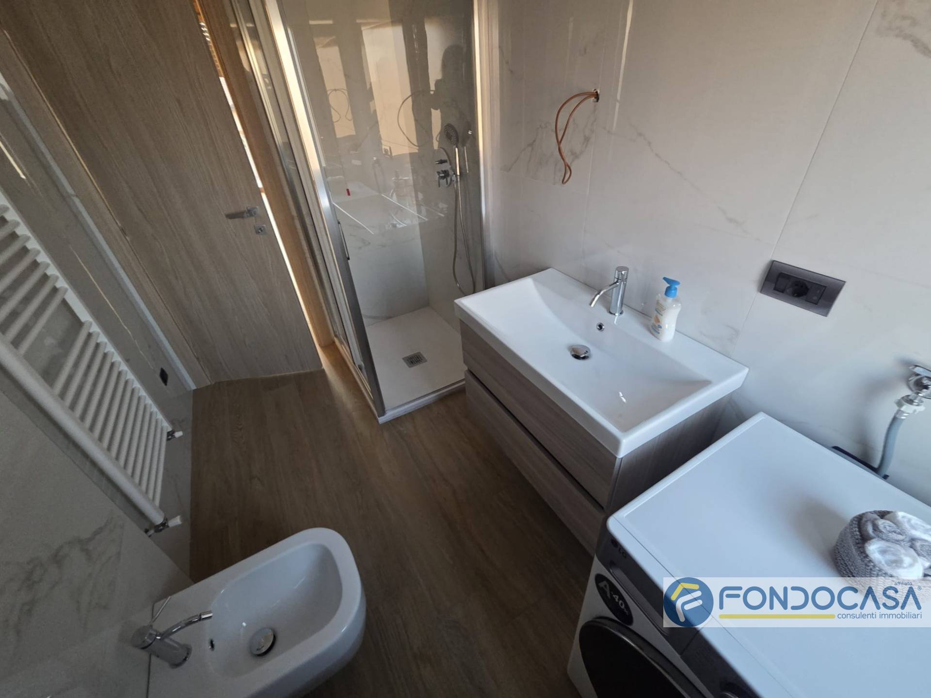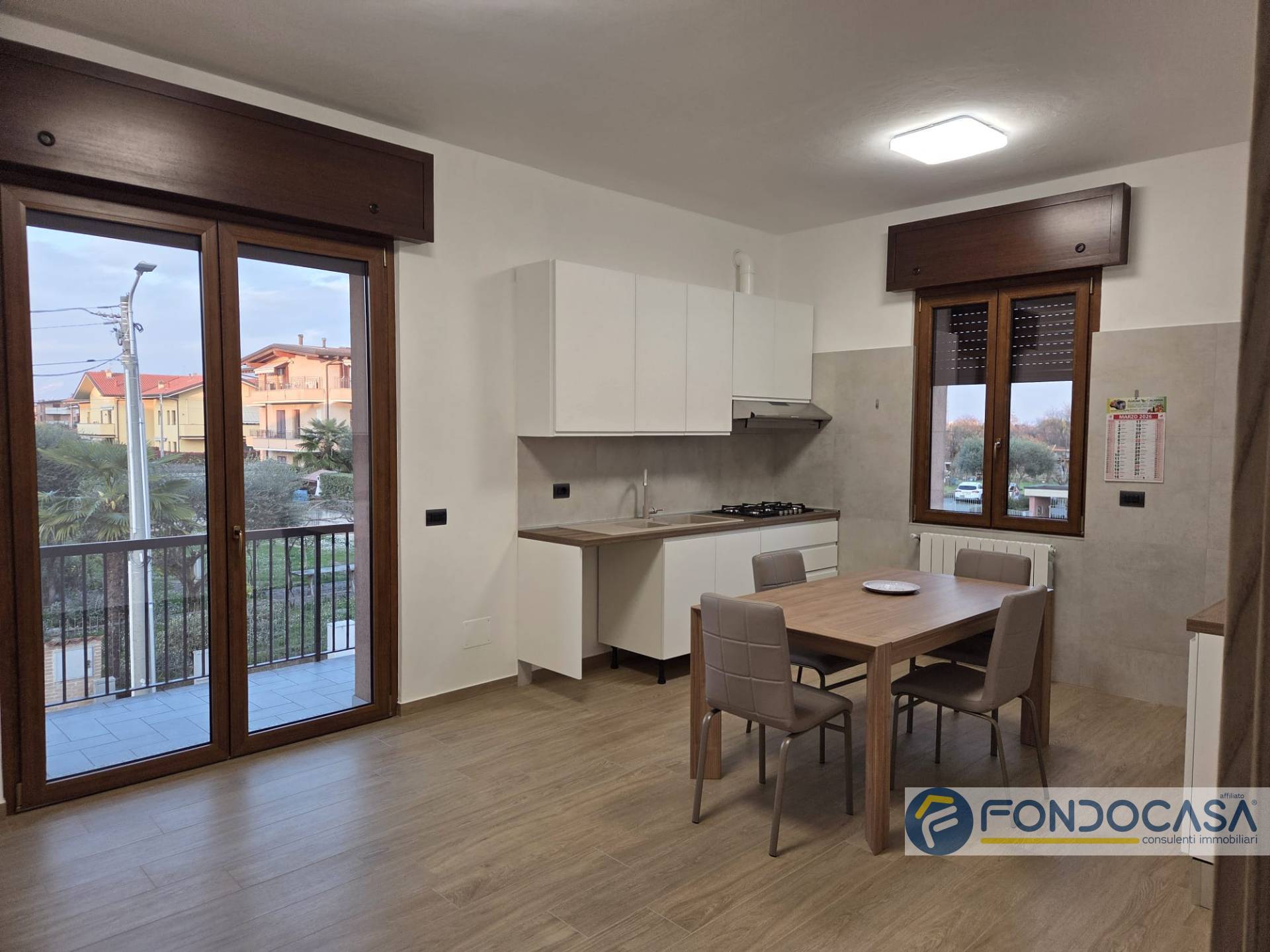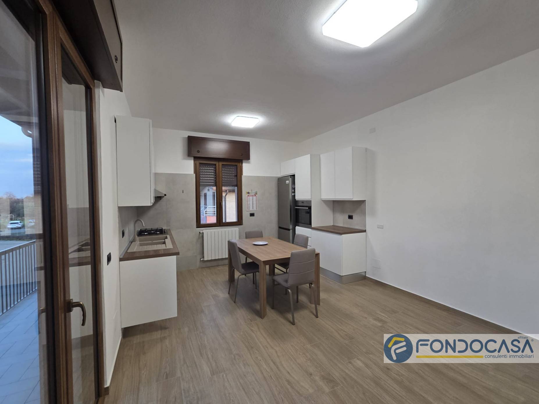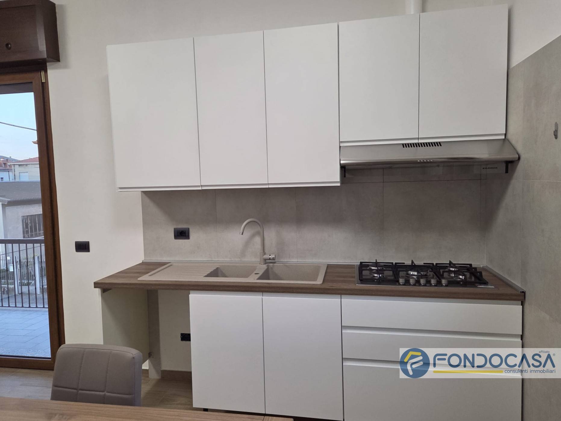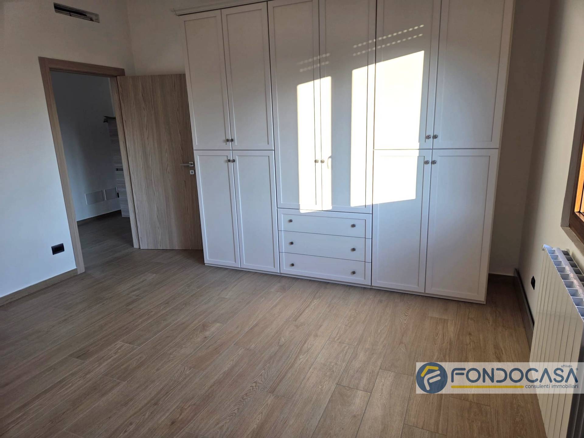 L'appartamento è posto al primo piano ed è così composto: ingresso sul disimpegno che conduce alla zona giorno con cucina a vista e sfogo sul balcone sfruttabile, camera da letto matrimoniale, cameretta e bagno con doccia.