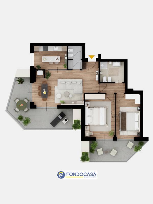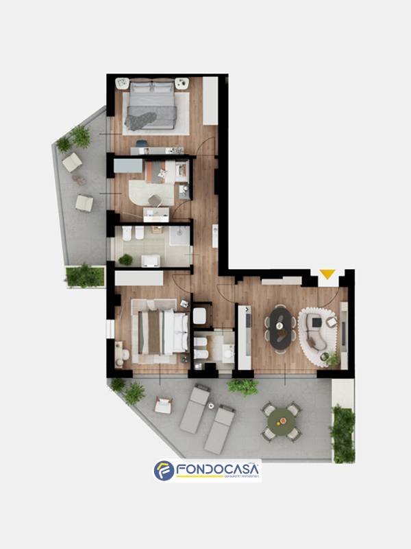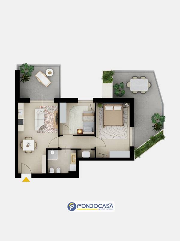 Il complesso si compone di appartamenti progettati per valorizzare luce naturale, spazi esterni vivibili e continuità tra interno ed esterno.