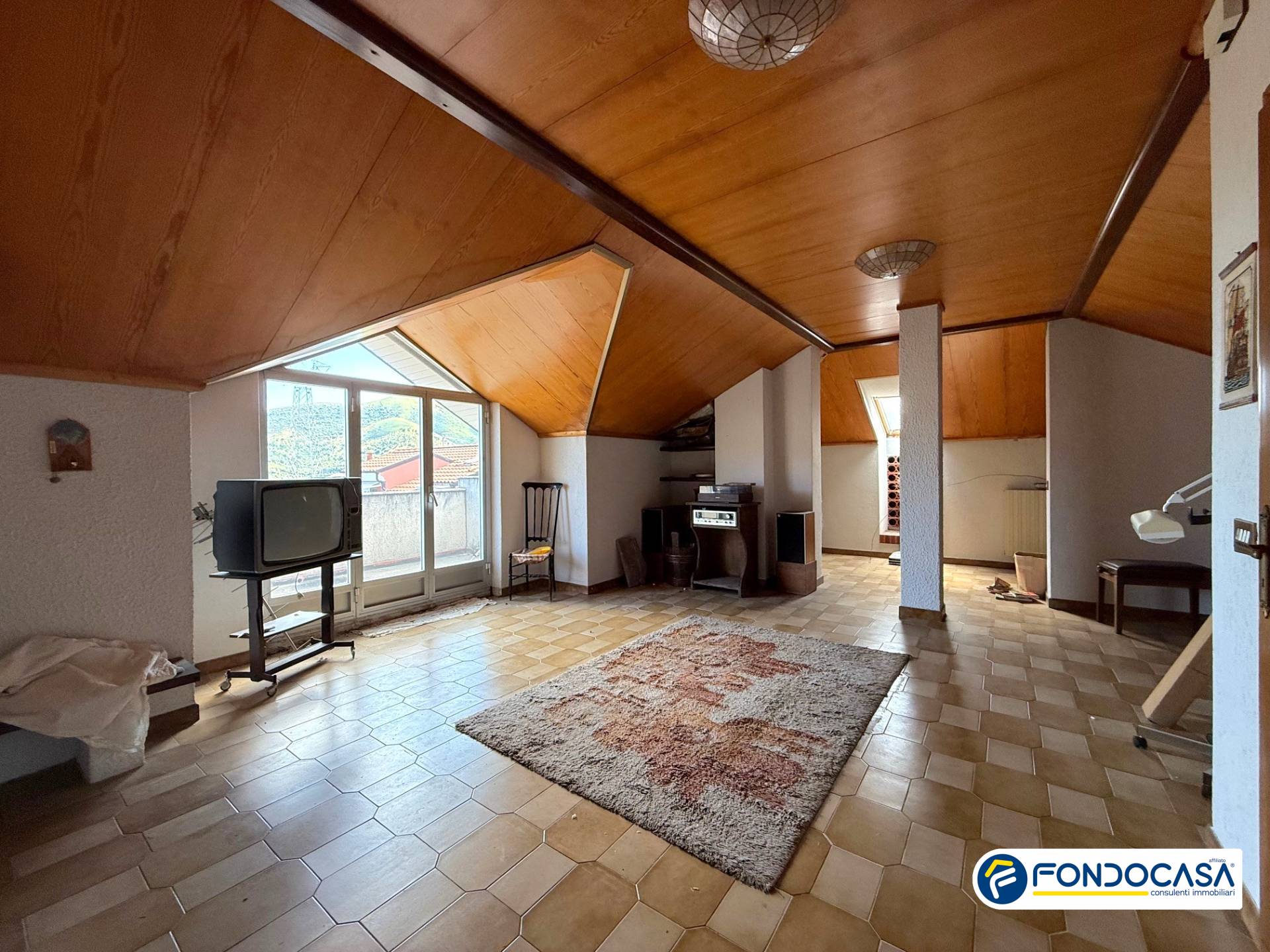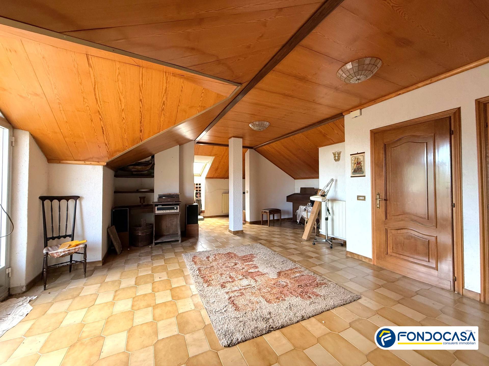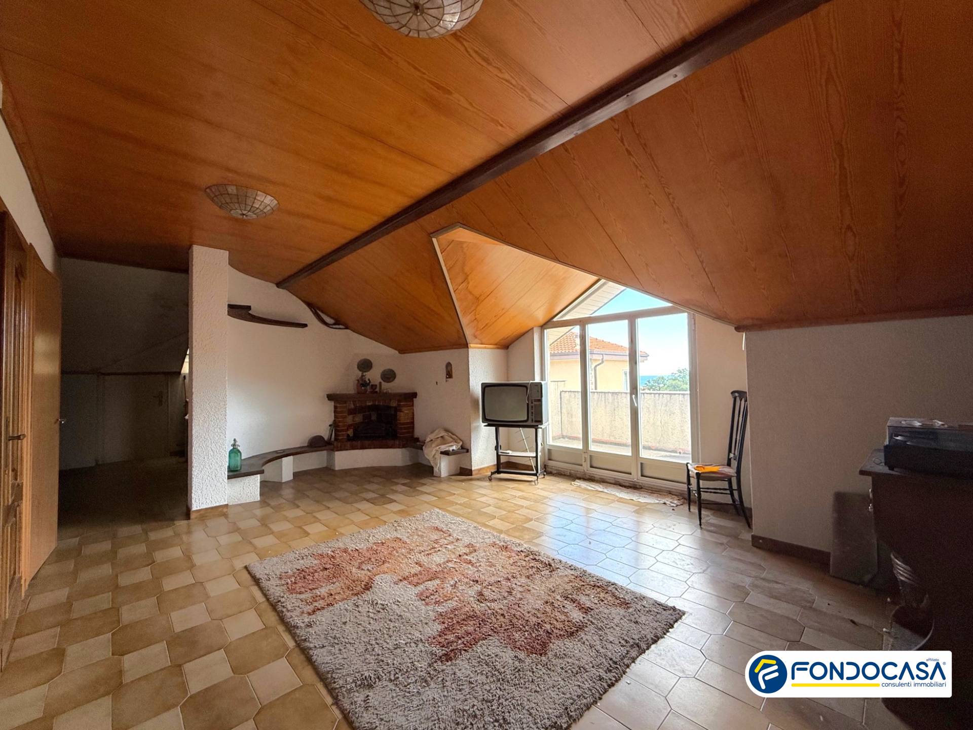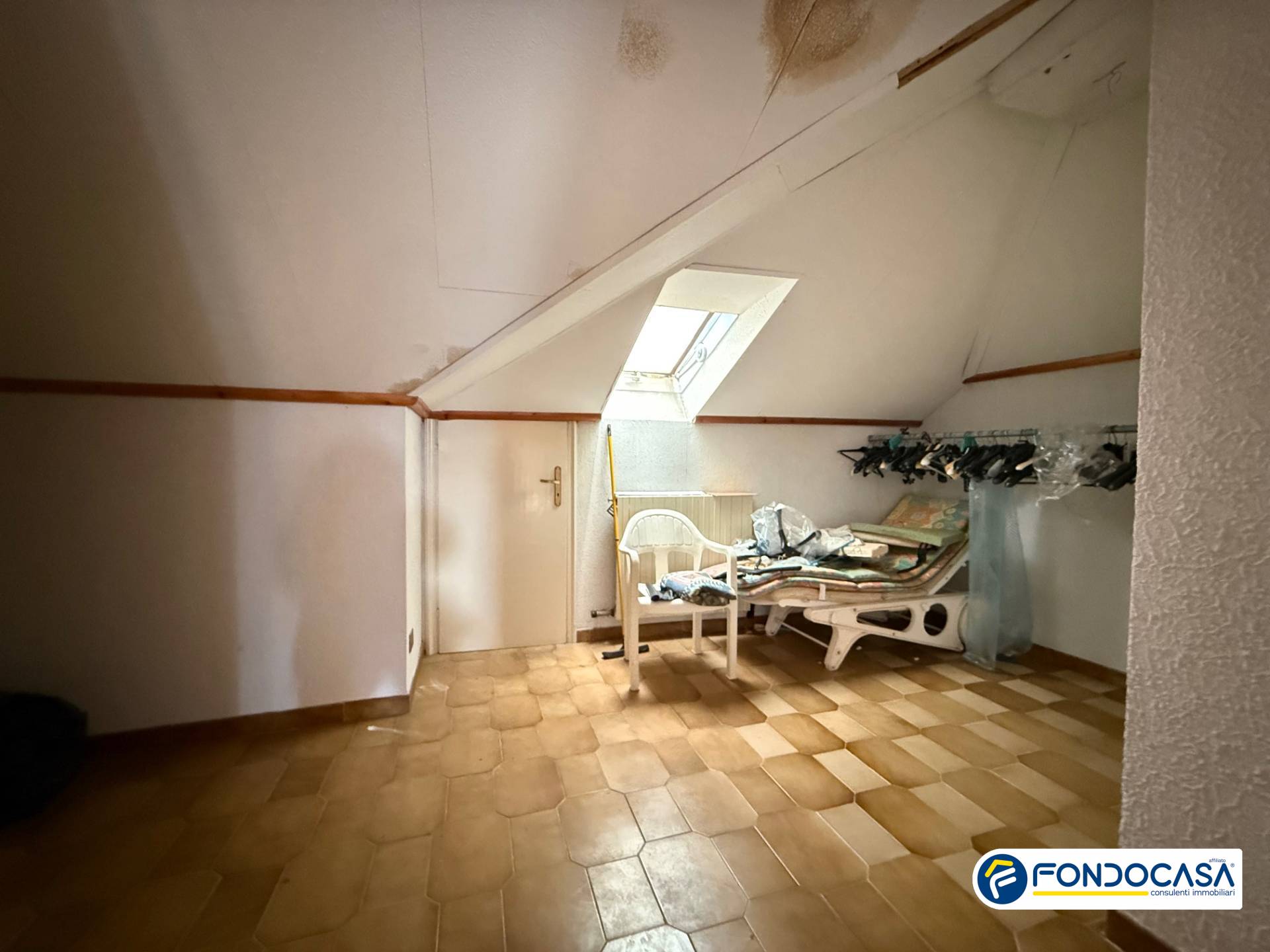 Al piano superiore, collegato da una comoda scala, si trova un ampio sottotetto di 60 mq composto da un unico vano ed un terrazzino con scorcio di vista mare, ideale per essere adibito a camera, sala hobby o nel quale poter ricavare un ulteriore piccolo alloggio.