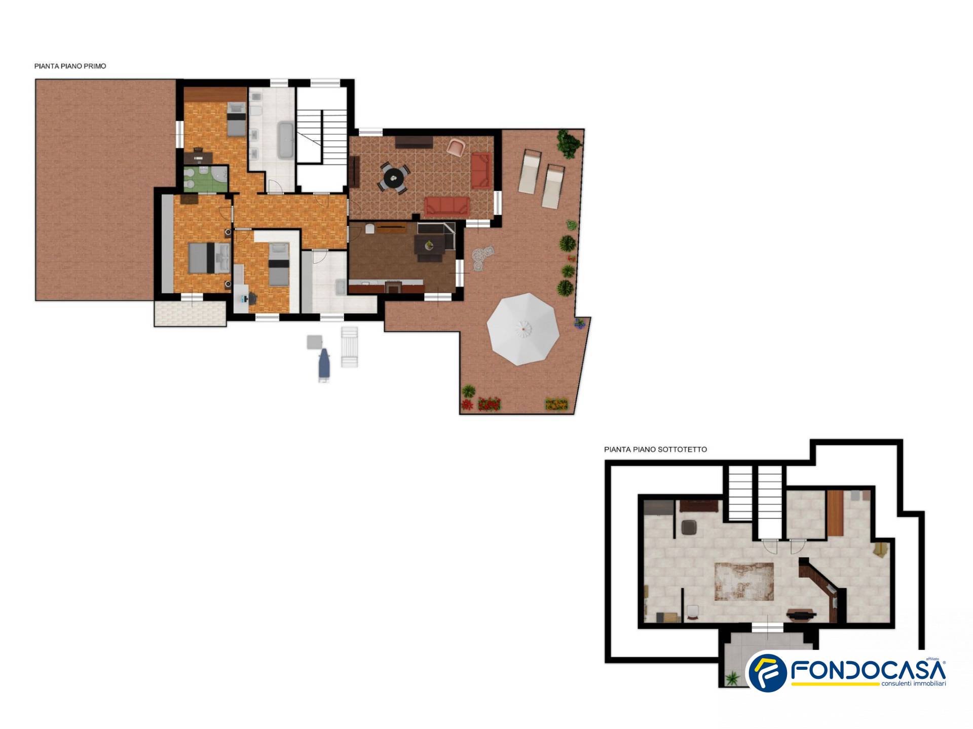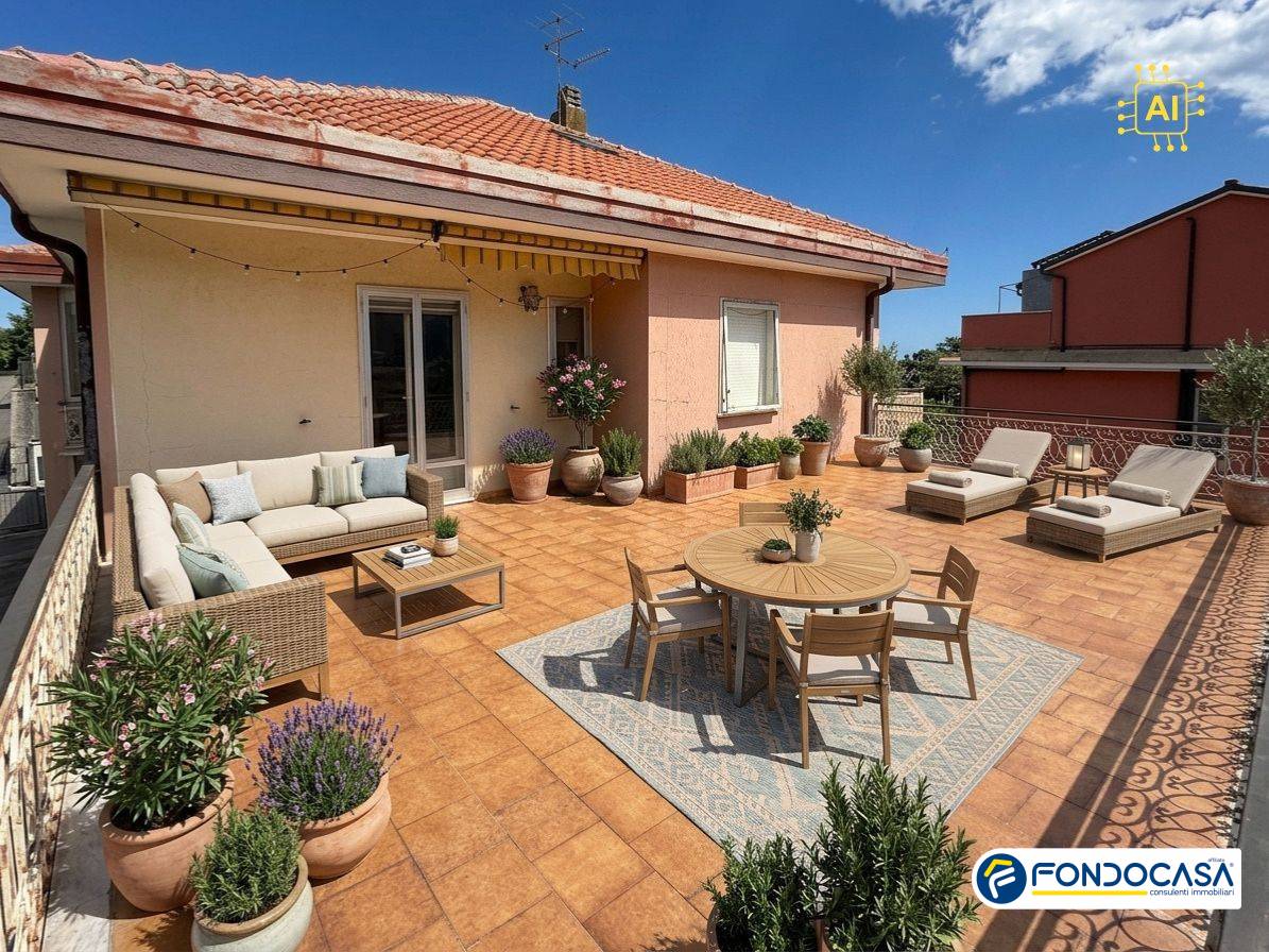 NB: le fotografie dei terrazzi arredati e del box auto vuoto sono state generate utilizzando l'intelligenza artificiale.