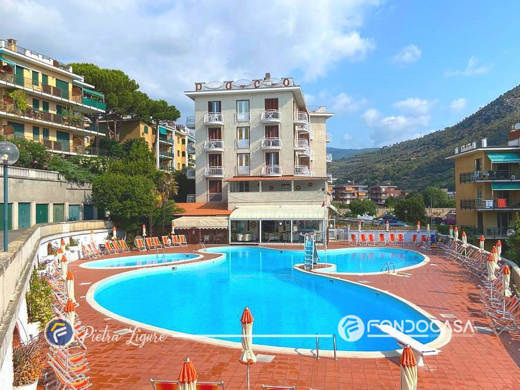 A pochi minuti dalle spiagge e alle spalle del centro storico di Pietra Ligure, proponiamo in vendita un ampio appartamento situato nella rinomata residenza "Milano Mare", un contesto residenziale curato e immerso nel verde.