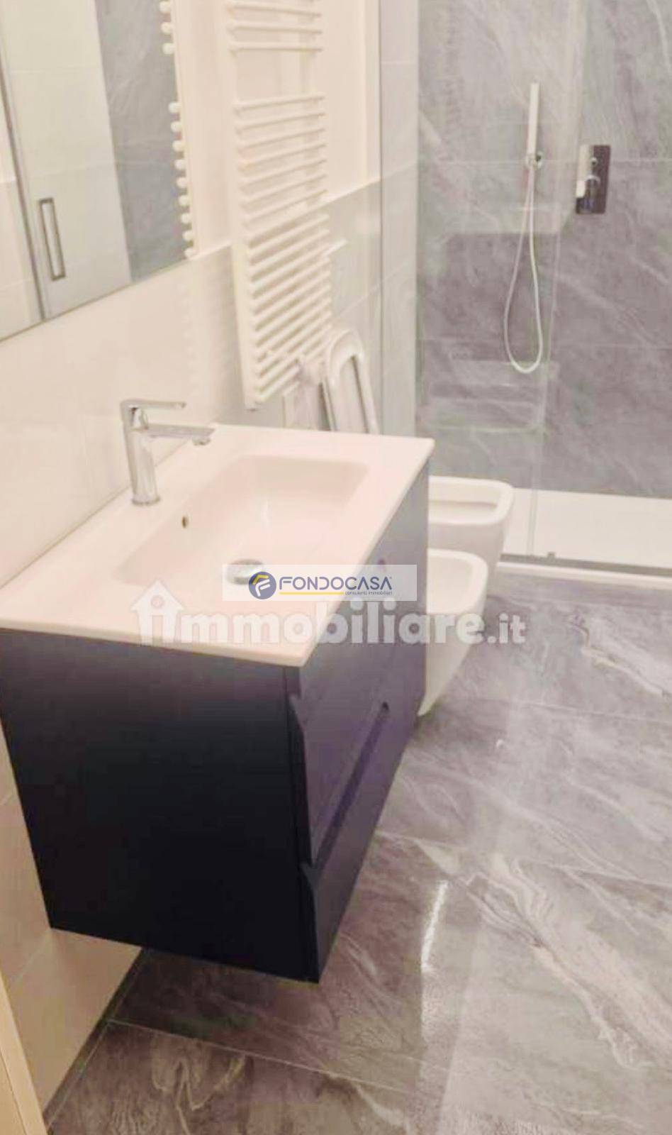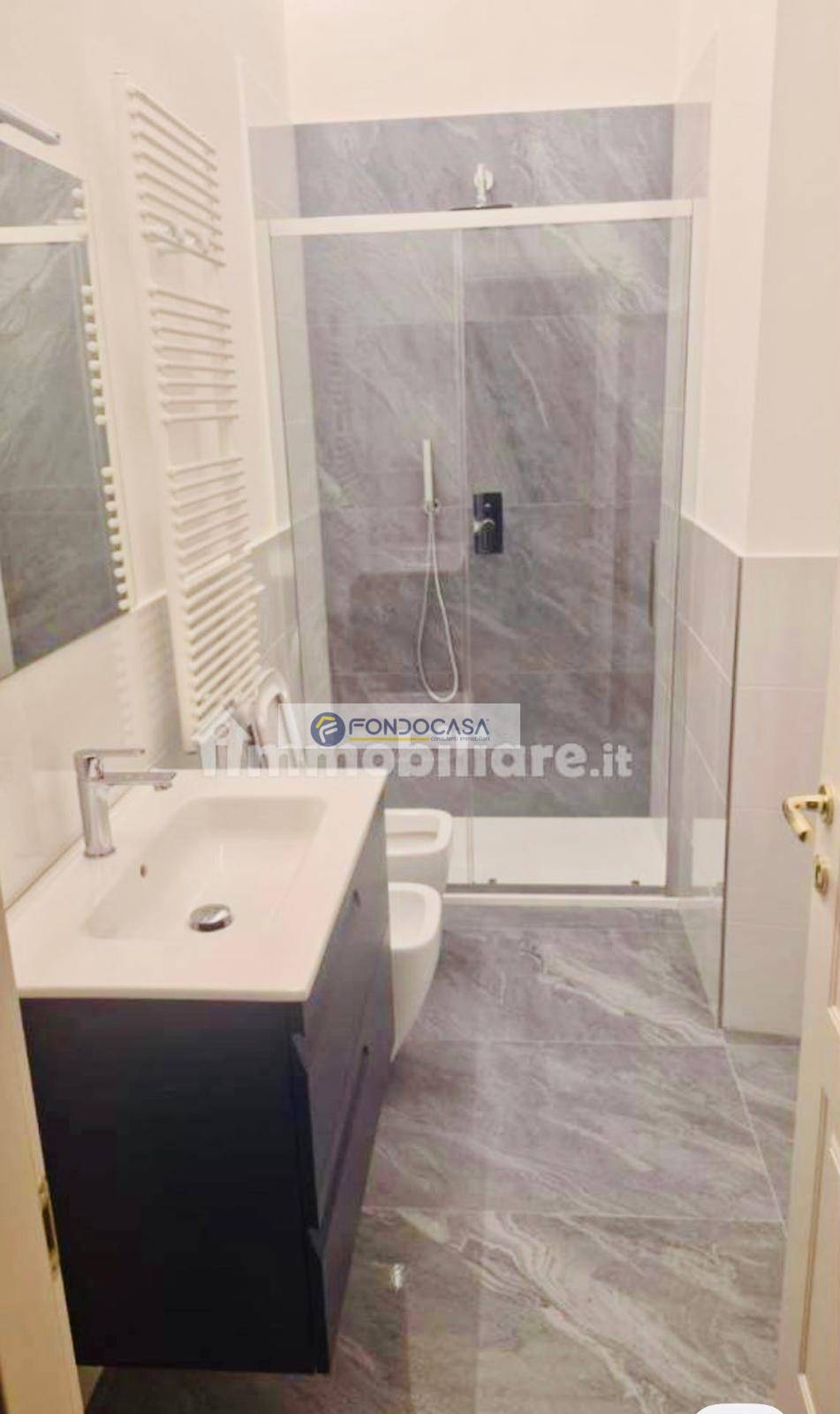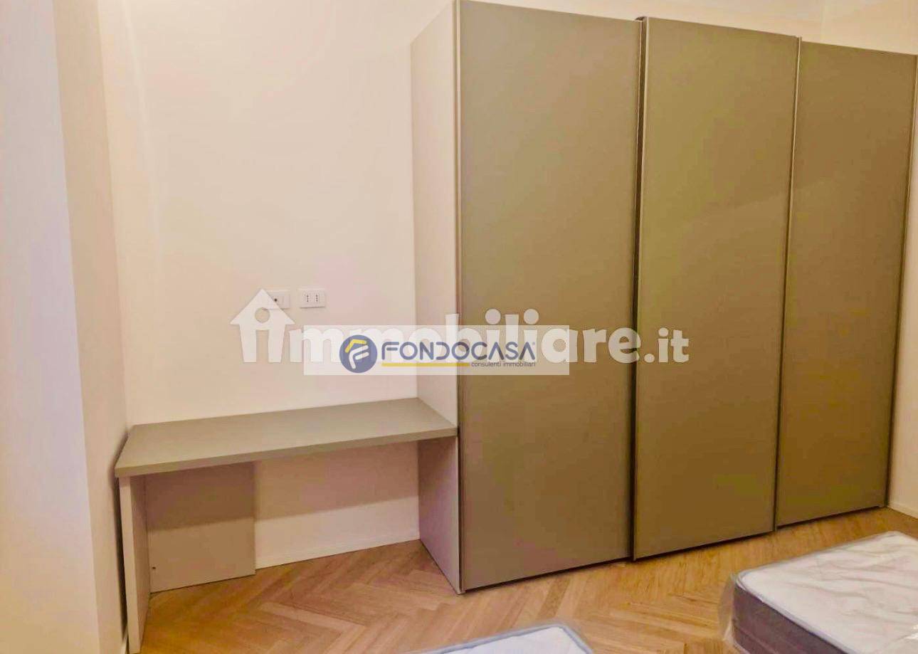 L'immobile si sviluppa su una superficie di 80 metri quadri ed è composto da: ampio soggiorno/cucina, disimpegno, due camere matrimoniali, due bagni di cui uno finestrato e un comodo ripostiglio da adibire a lavanderia. L'appartamento è stato completamente ristrutturato ed isolato, con finiture di pregio: parquet massello di 1,5 cm, finestre termiche, persiane in alluminio, porte tamburate con bugne effetto boiserie, portoncino blindato termico, impianto elettrico con led in tutti gli ambienti e pompa di calore per caldo/freddo. I due bagni hanno lavelli da 80 cm e sanitari sospesi, docce entrambe da 120 cm.