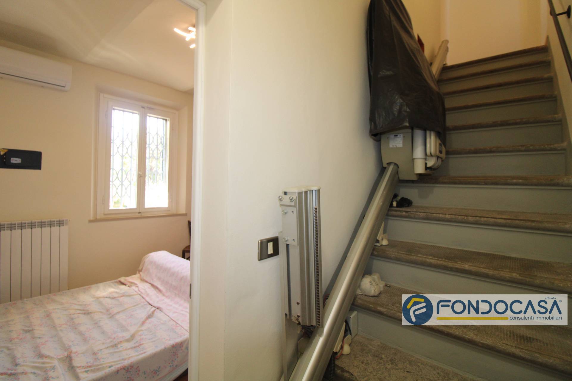L'ingresso al primo piano dal disimpegno accediamo alla prima camera da letto matrimoniale, al piano superiore abbiamo la cucina abitabile completa di tutti gli elettrodomestici e arredata con gusto e funzionalità, il bagno con finestra e doccia, la seconda camera da letto matrimoniale con balcone e un bagno di servizio finestrato.