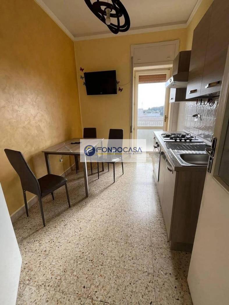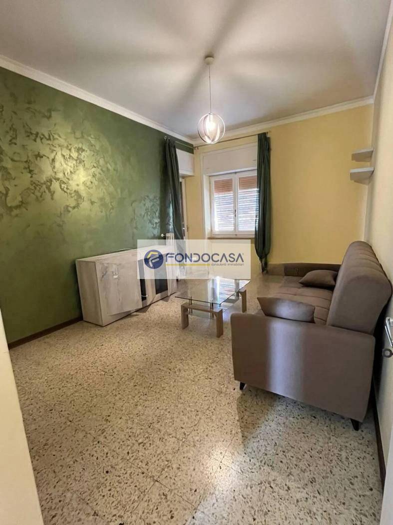 Ampio ingresso, soggiorno luminoso con terrazzino, cucina abitabile completamente attrezzata con uscita su balcone, 2 ampie camere da letto, bagno, ripostiglio, cantina.