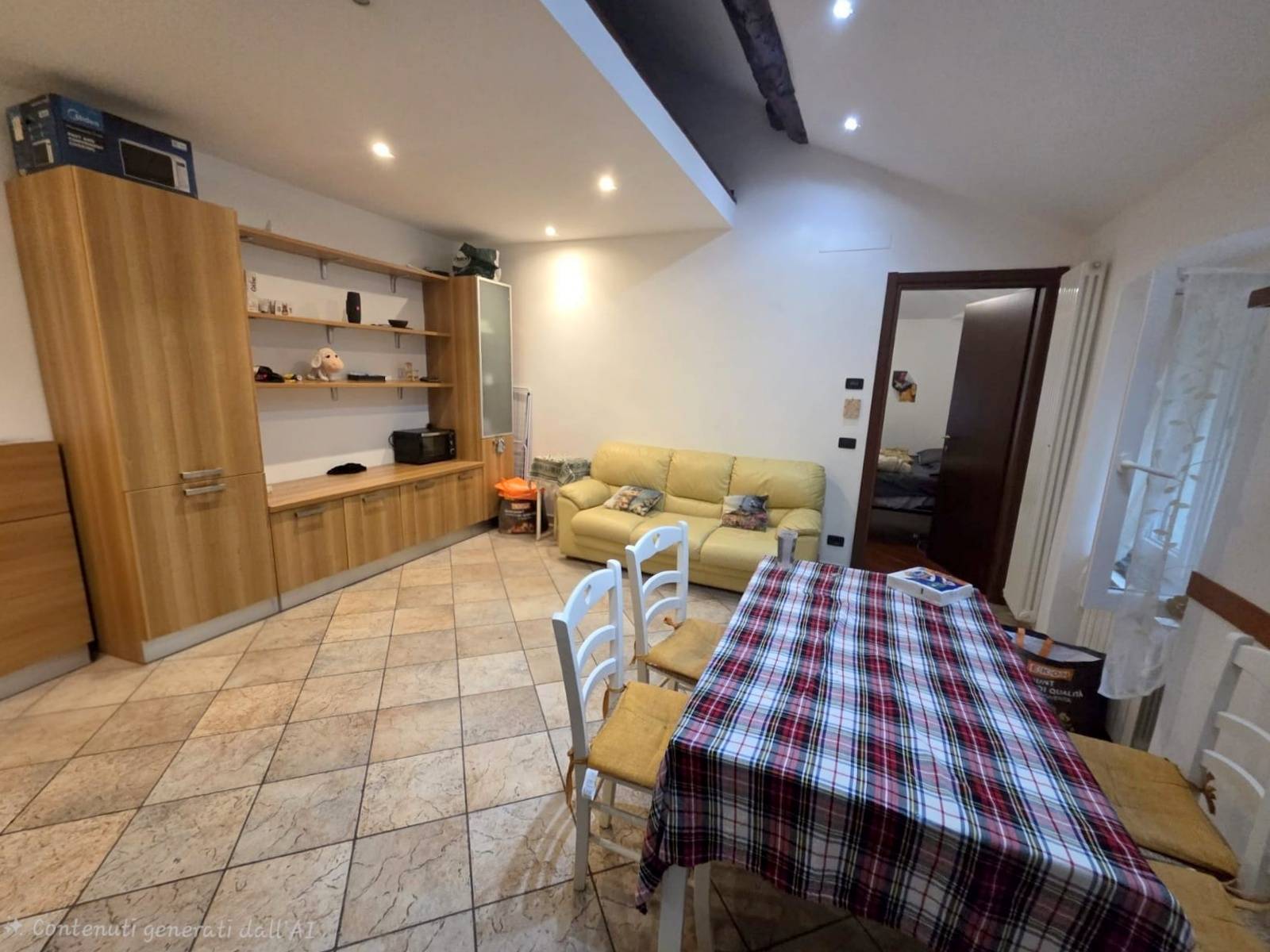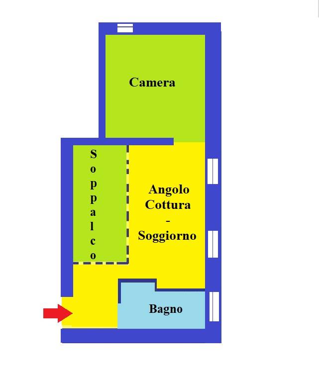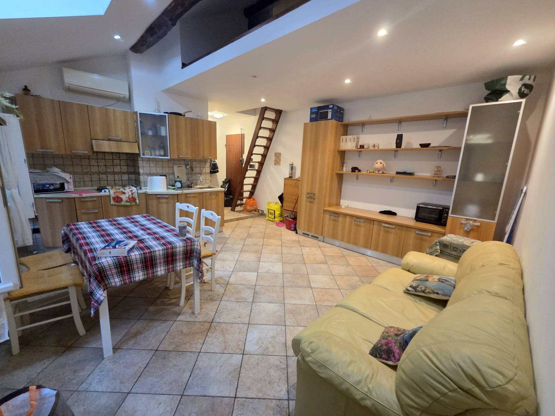 Internamente è composto da un ingresso in soggiorno con cucina a vista, camera da letto matrimoniale, soppalco usato come seconda cameretta e bagno con box doccia.