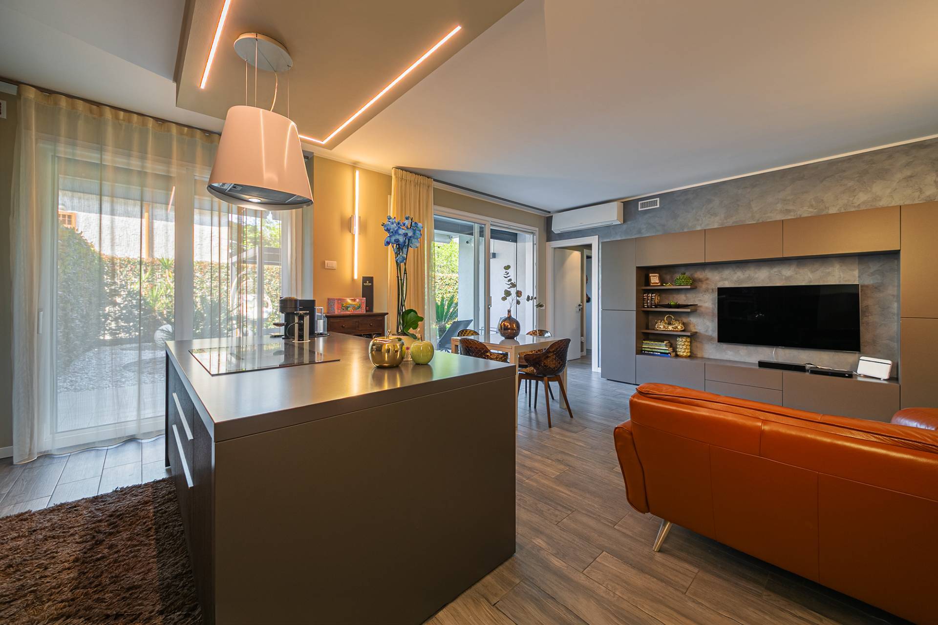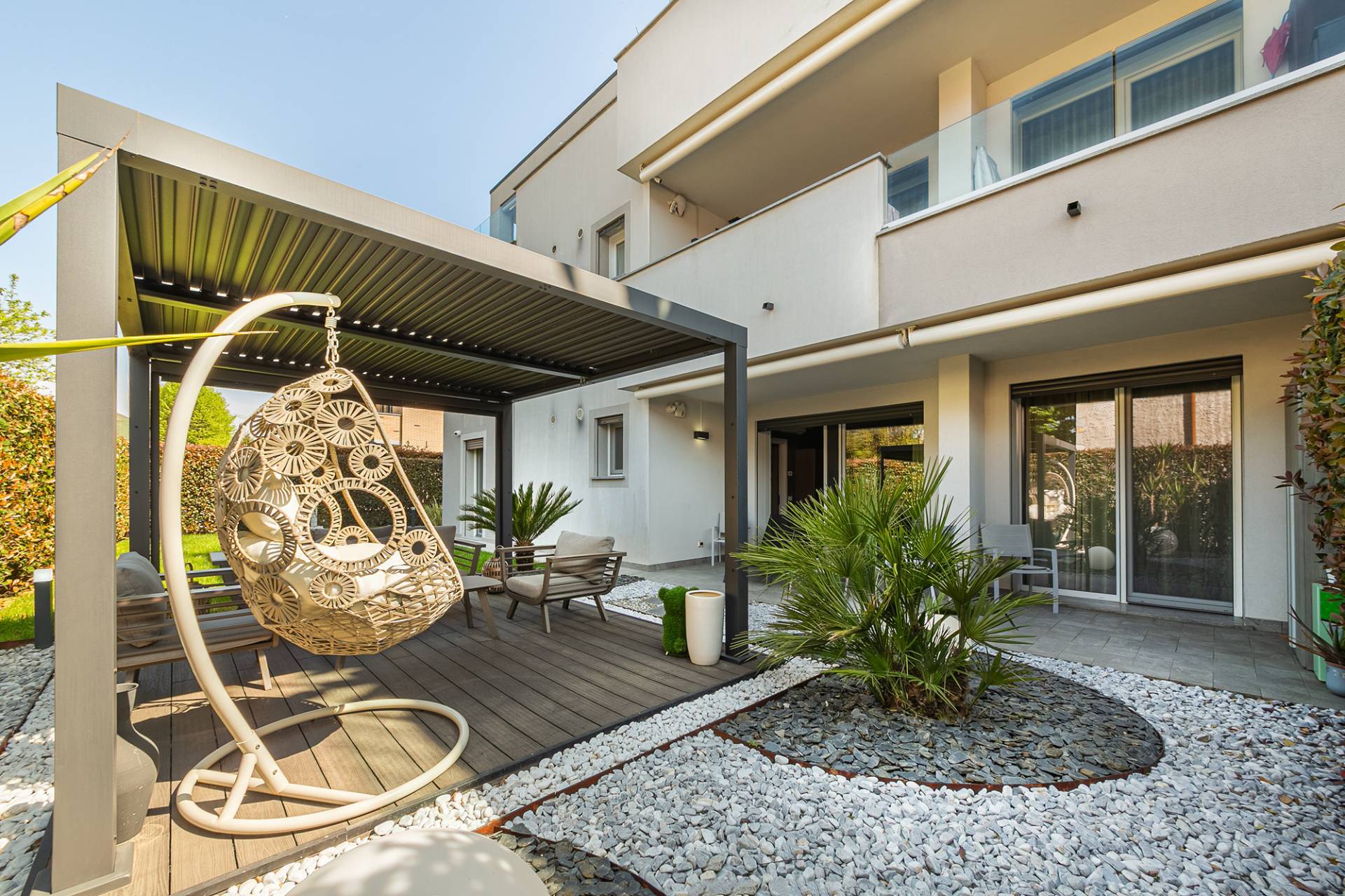 Unico nel suo genere, questo straordinario appartamento in vendita a Carugate si sviluppa al piano terra, offrendo una dimensione abitativa di assoluta eleganza e riservatezza, ma allo stesso tempo vicina ai principali servizi della città. La proprietà viene venduta completa di tutti gli arredi fissi realizzati su misura, permettendo così un ingresso immediato e senza ulteriori spese per l'arredamento. Situato al piano terra di una palazzina costruita nel 2018, gode di una posizione privilegiata e di una buona esposizione solare. Qui, la tecnologia più avanzata si fonde armoniosamente con il fascino moderno dell´edificio, creando un´opportunità abitativa unica, non solo una casa, ma uno stile di vita esclusivo per chi desidera coniugare bellezza e modernità. L'immobile si presenta in ottime condizioni, pronto per essere abitato. L'appartamento si estende su una superficie totale di 109 mq, l´ingresso, introduce in un ambiente accogliente e di grande fascino, un ampio soggiorno con una splendida cucina "Dada" si affaccia grazie ad una suggestiva vetrata sul giardino privato di 220 mq, finemente attrezzato per godersi momenti di assoluto relax, impianto di irrigazione e di antizanzare. La zona notte è concepita per garantire il massimo comfort ed è composta da una camera padronale con cabina armadio, una seconda ampia cameretta e due bagni di design.