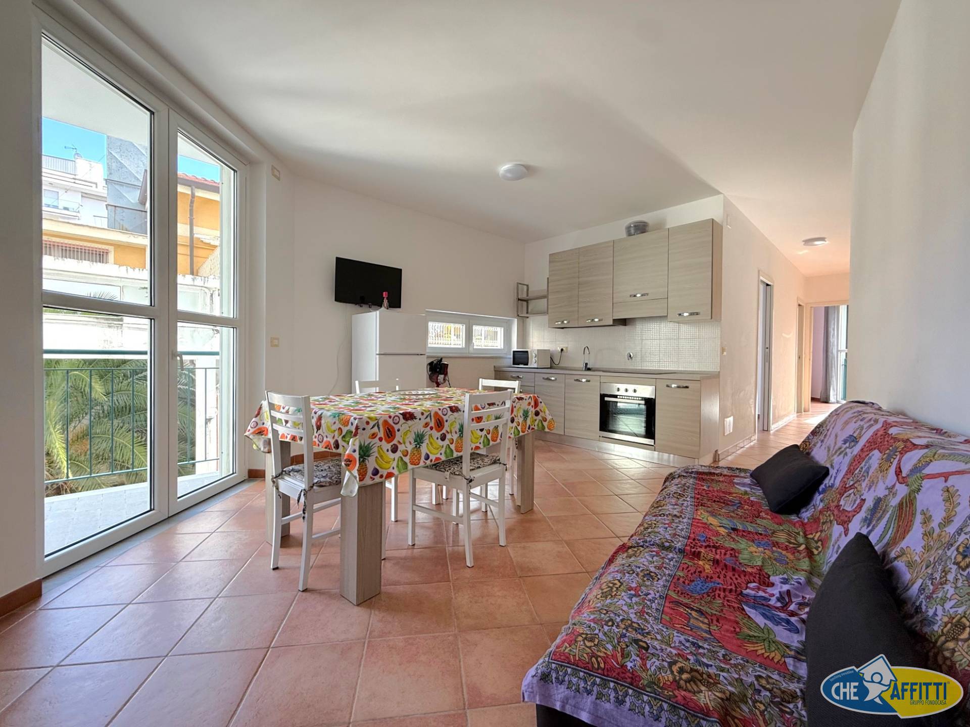 L'appartamento è composto da ingresso, soggiorno con zona cottura, camera matrimoniale, cameretta, bagno finestrato con doccia ed un balcone.