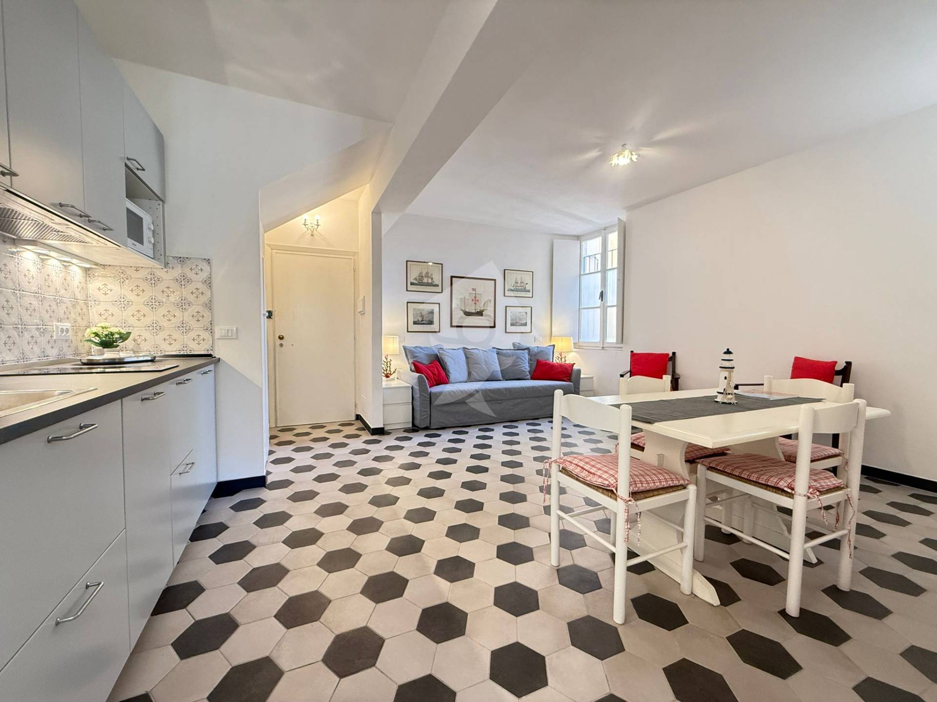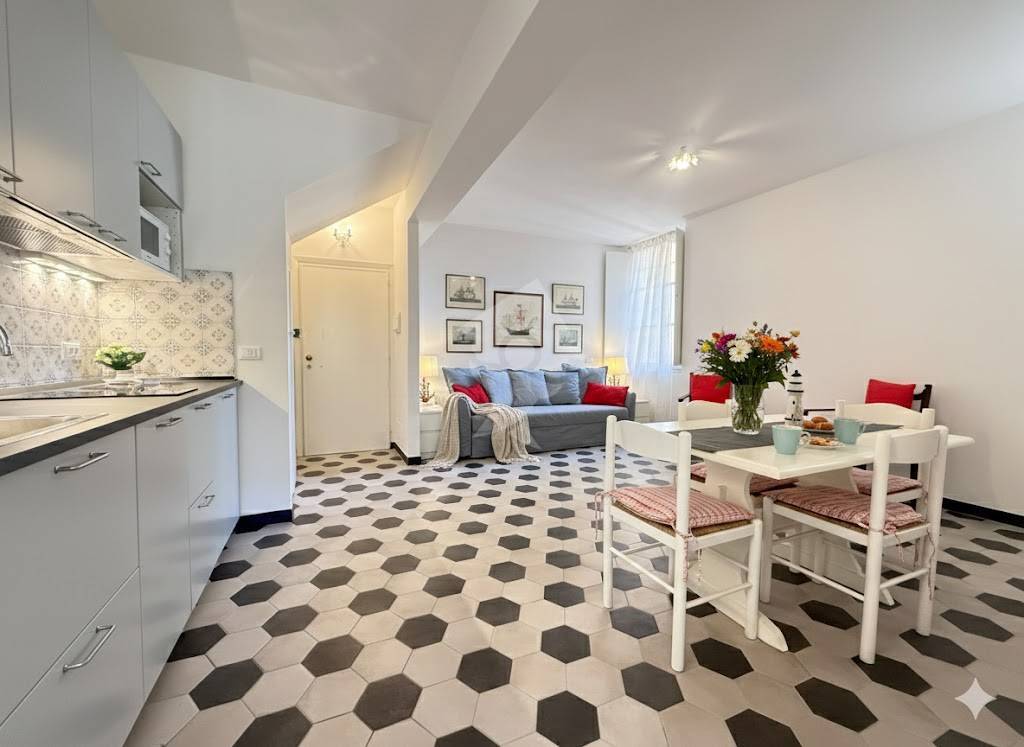 Proponiamo in esclusiva, meraviglioso e luminosissimo bilocale a due passi dal mare, in palazzina storica nel cuore di uno dei borghi più belli della Riviera Ligure, posto al 1° piano senza ascensore