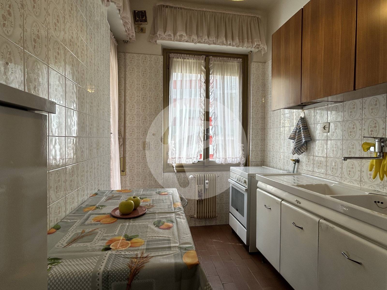 A soli 300 metri dal mare, situato in uno stabile in buone condizioni manutentive e dotato di ascensore, proponiamo trilocale di 55 metri quadrati