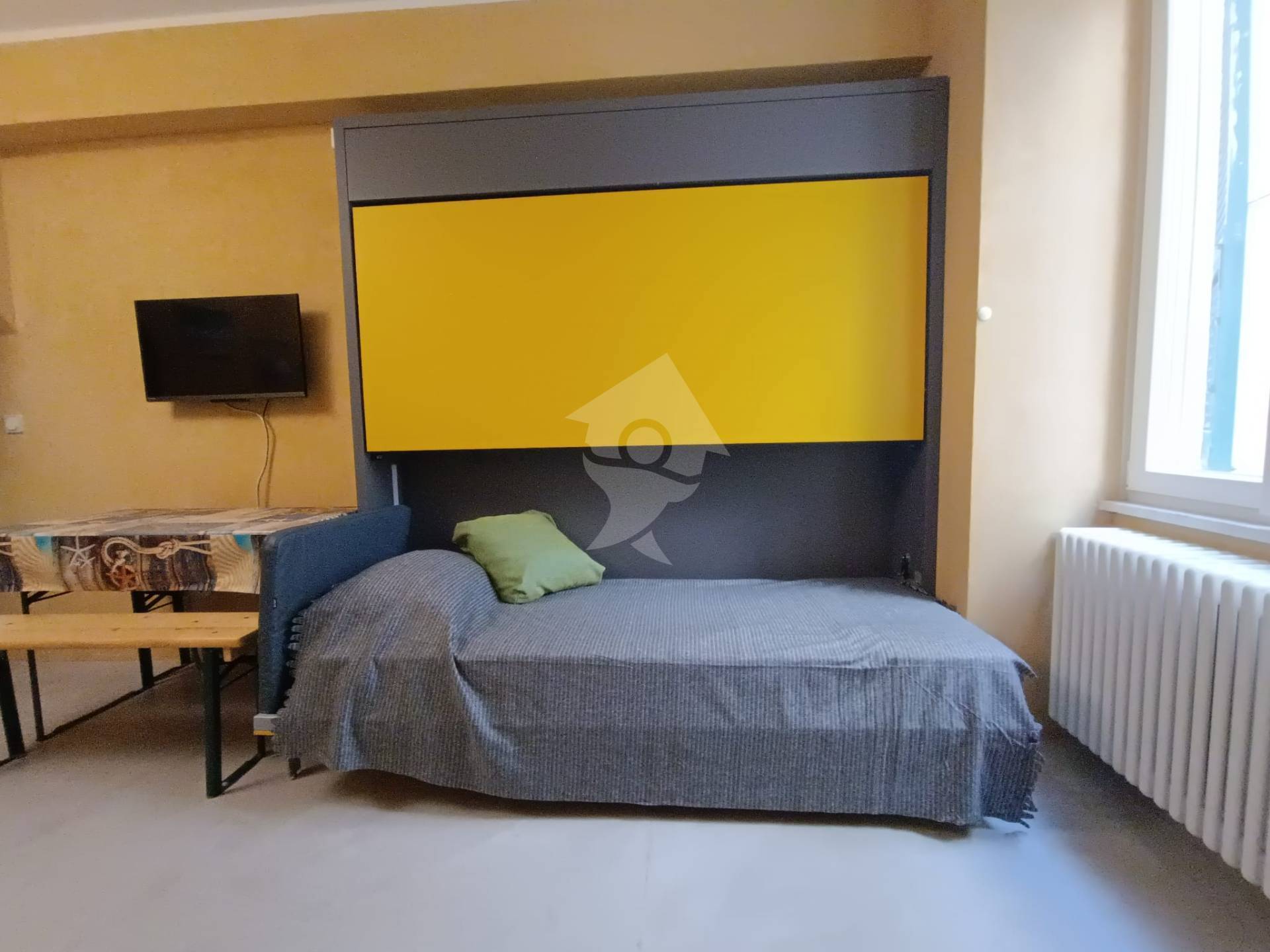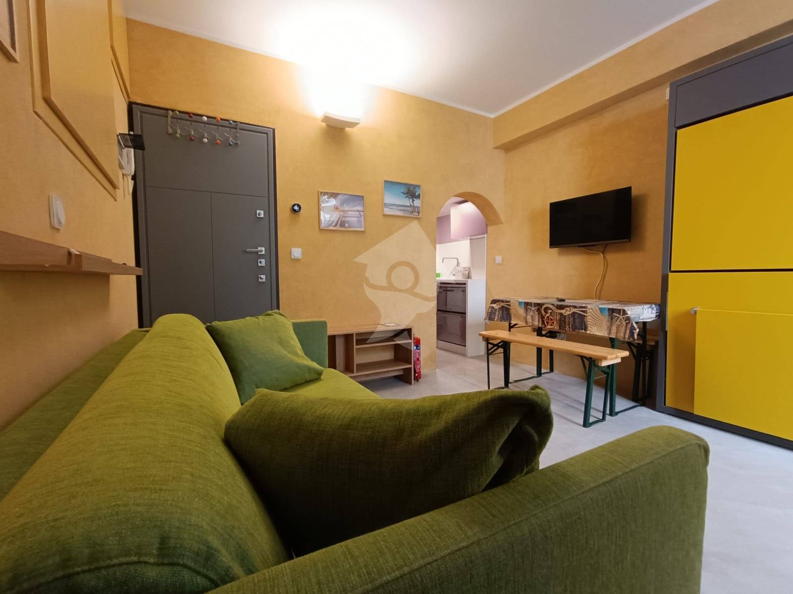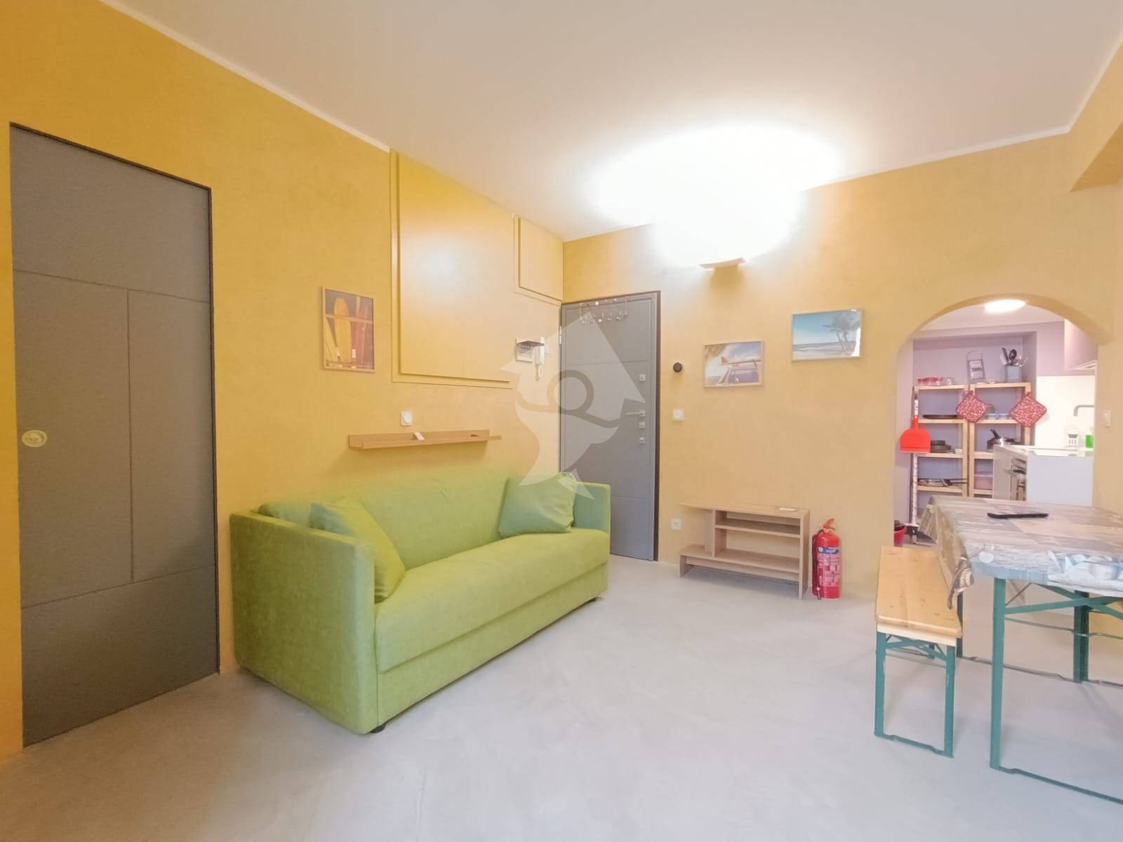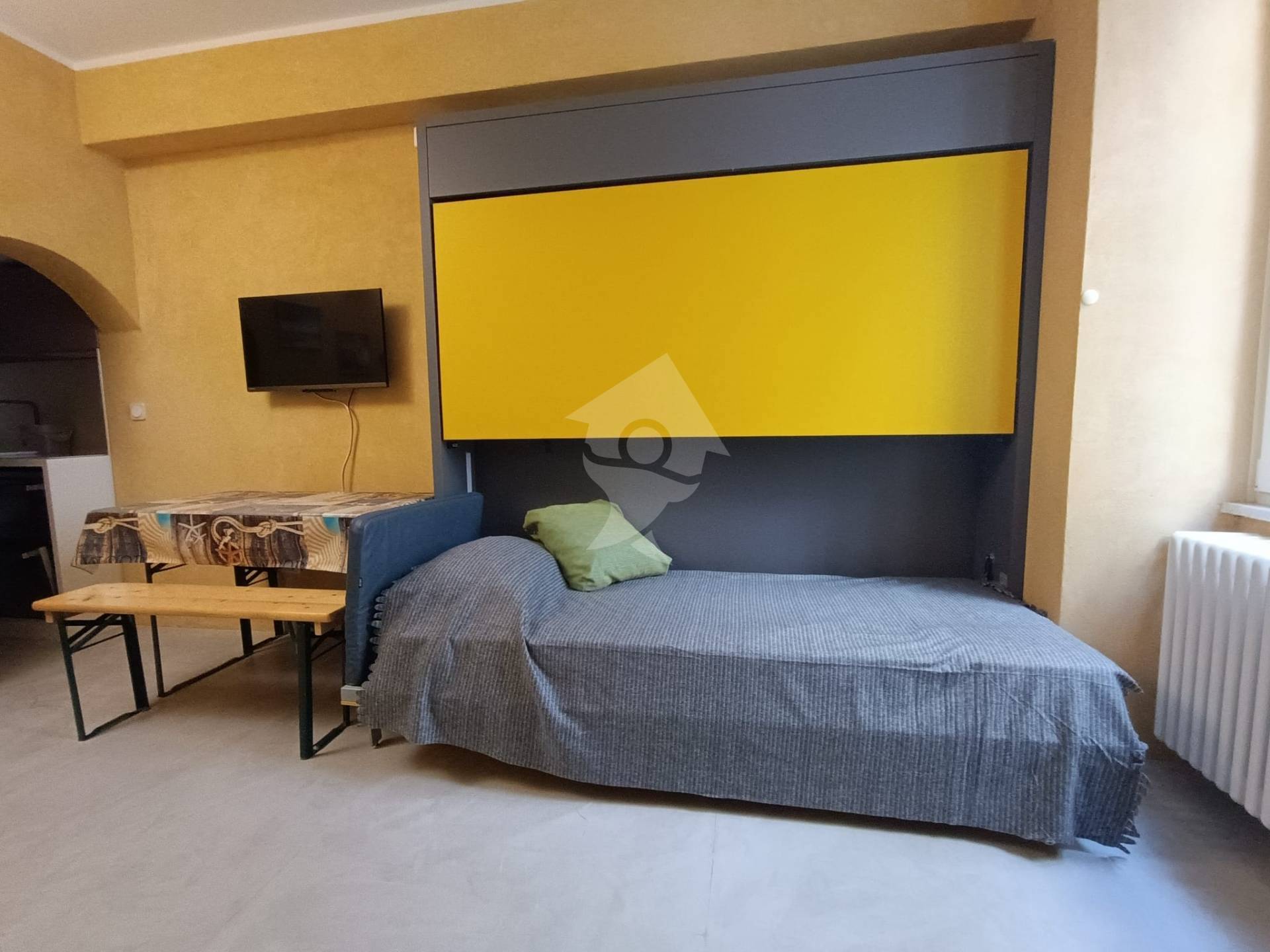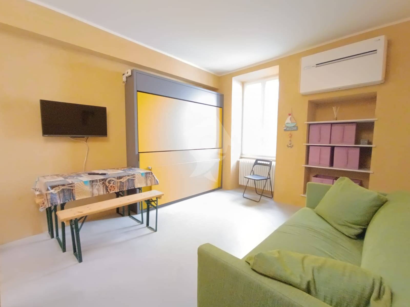 Si compone di un soggiorno ben organizzato con divano letto e letto singolo a scomparsa, un cucinino attrezzato e un bagno finestrato.