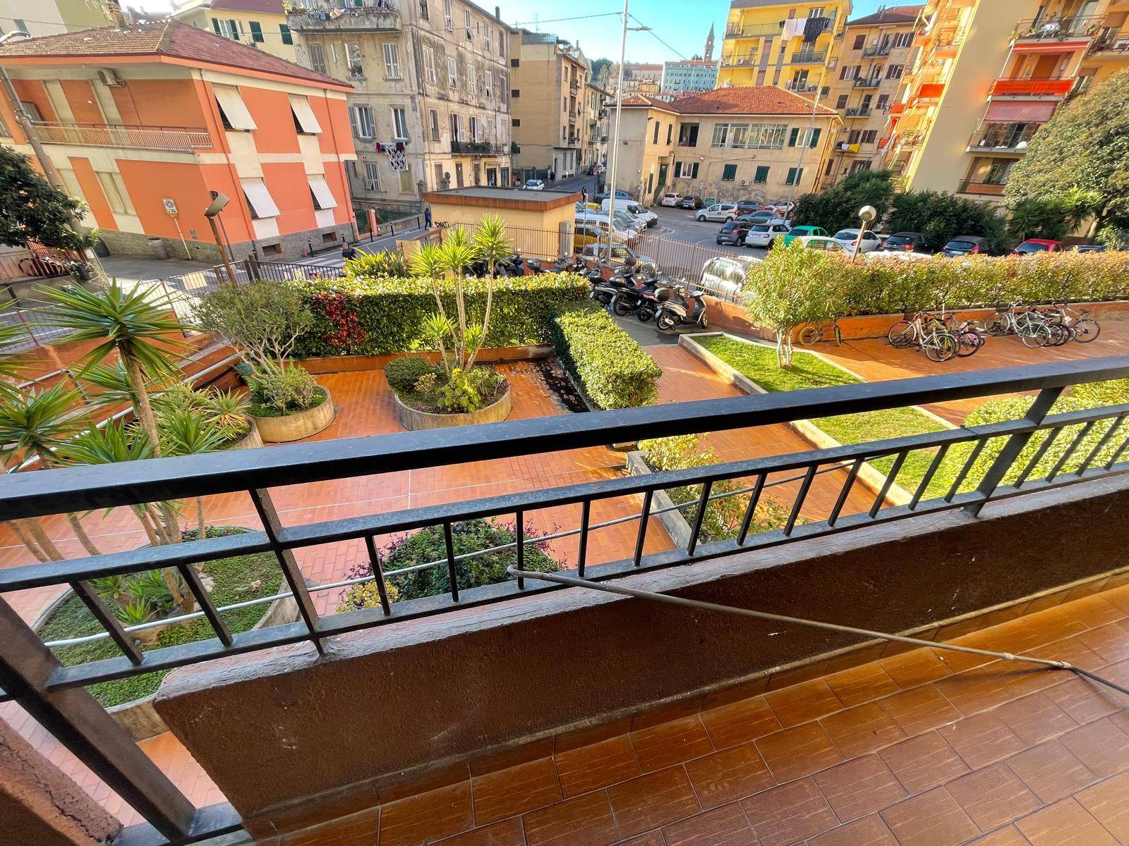 VENTIMIGLIA - Via San Secondo - Appartamento non arredato composto da: soggiorno con angolo cottura, 2 camere, bagno, cantina, 2 terrazzi e posto auto condominiale a rotazione. Riscaldamento centralizzato.