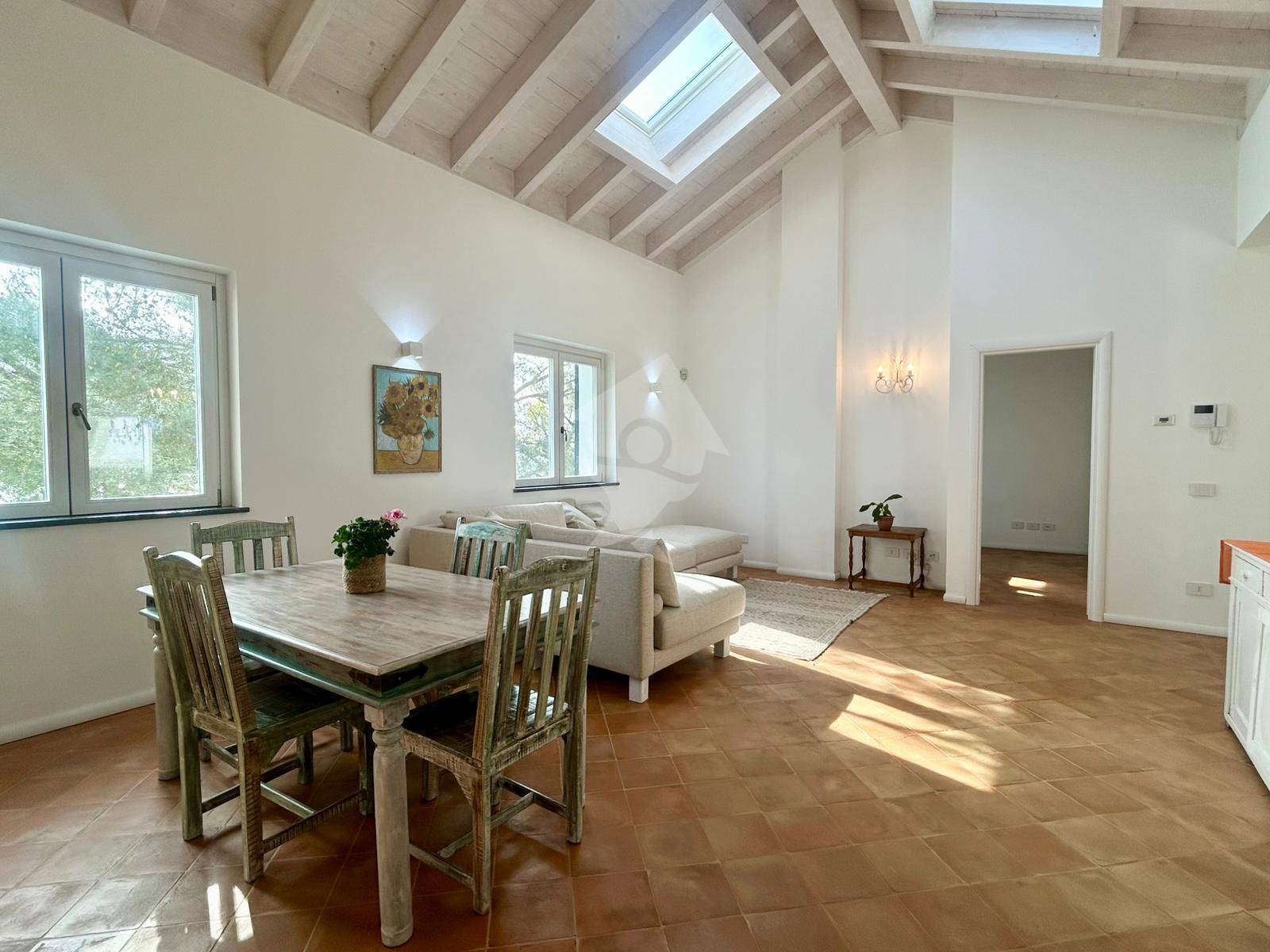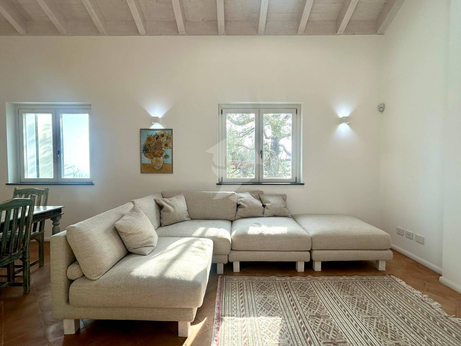 Tutti gli ambienti si affacciano sulla valle e godono di una splendida vista mare, rendendo gli spazi particolarmente luminosi durante tutta la giornata.